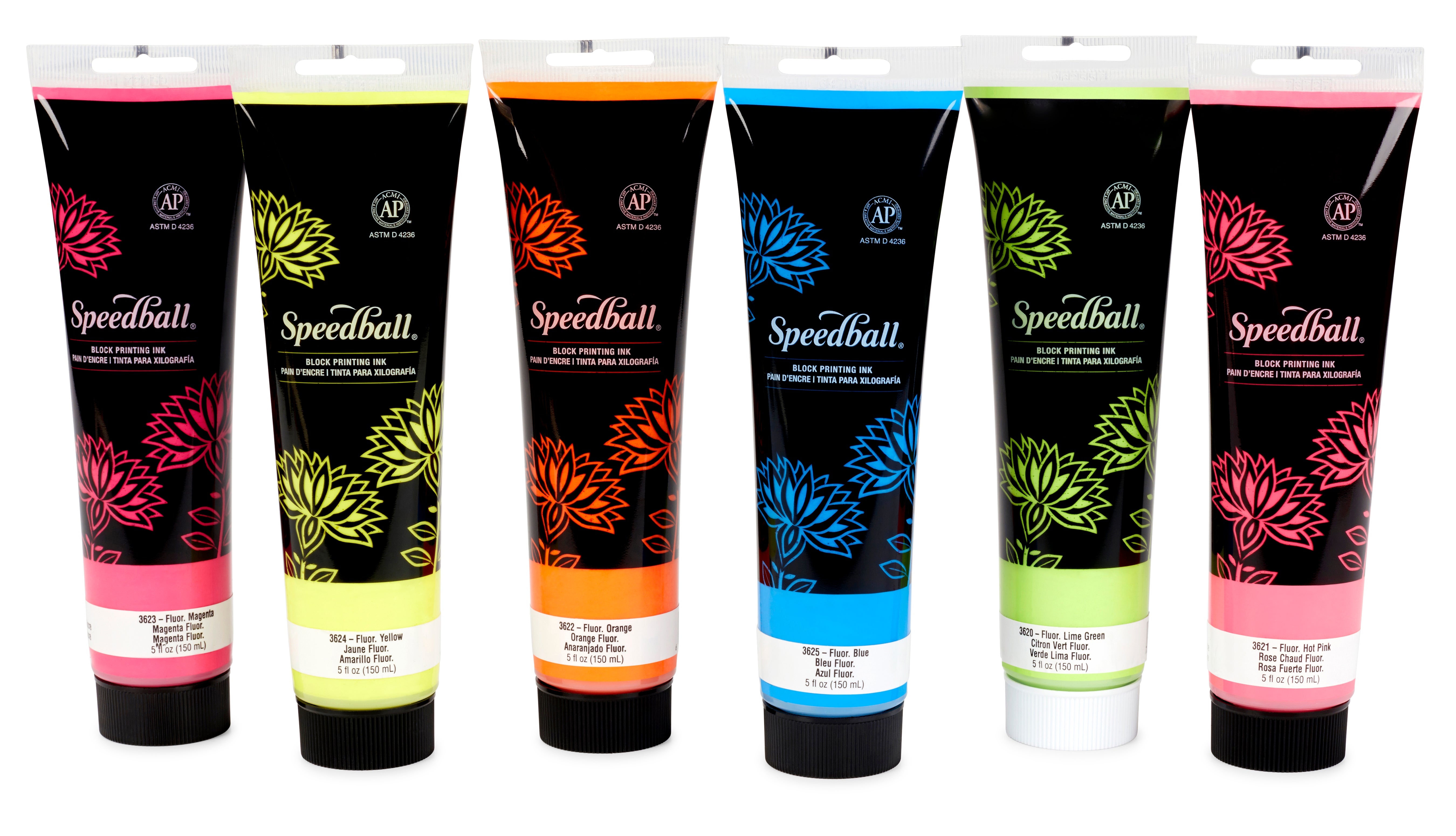 Home » Speedball Printmaking » Block Printing » Water-Soluble Block Printing Inks & Modifiers » 003620-003621-003622-003623-003624-003625-Fluorescent-Water-Soluble-Block-Printing-Ink-Family-Shot7011