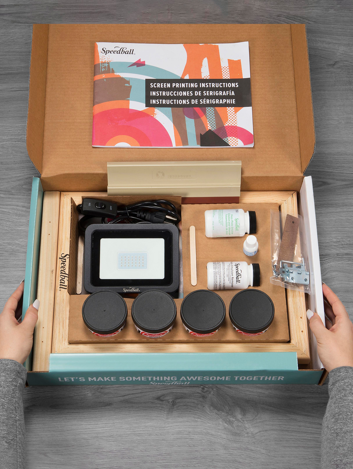 Speedball Screen Printing kits are expertly curated to be the perfect introduction each screen printing technique and guarantee inky success! Each and every kit from Speedball is hand packed and assembled on the kit line in the Speedball manufacturing facility. A select few team members work in tandem to pack out the wide variety of materials included in each kit. During this process each item also gets one last quality check to ensure the quality of materials going out to artists across the globe. Working with speed and precision, every kit has been examined and packed by real people.