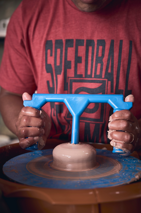 With a .5 HP industrial motor and 100lb centering capacity, the Clay Boss features a polyethylene tabletop and two-part splash pan for easy cleanup. A 14” wheel head and foot pedal with smooth, variable speed control (0-240 rpm). Its reversing plug allows for quick and easy changes of wheel direction, while its sophisticated load-sensing control ensures that the wheel head speed is maintained under changing loads. Each Clay Boss includes (1) each FREE 7.5” and 12” Brown Plastic Bats and carries a 10-year warranty. Eligible for $50 studio rebate.