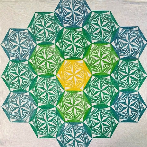 Susana McDonnell is the owner of LinoCave, a Boston-based home studio focused on geometric pattern design and block printing on fabric and paper. She holds a BFA from the New York State College of Ceramics at Alfred University and is a lifelong artist who has studied and taught many mediums including, but not limited to glassblowing, neon, wood, drawing and watercolor. Despite the fact that block printing is one of the few mediums she has not formally studied, the allure of it inspires her to teach and explore it further every day. She is the co-host of @printersolstice, a prompt-based printmaking campaign on Instagram that inspires printmakers around the world to create during the winter solstice and is also a Speedball Demo Artist.