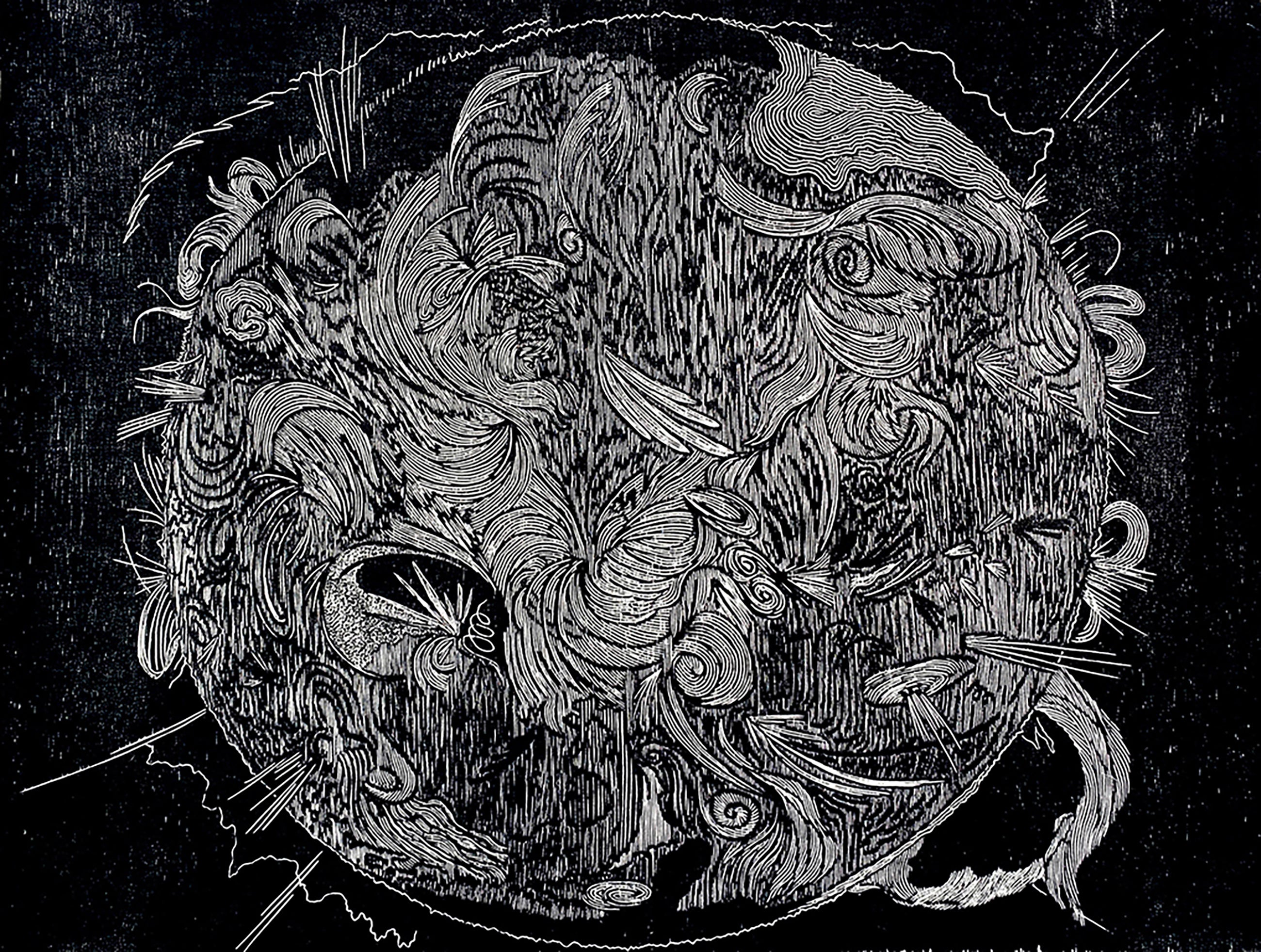 Home » Speedball Internal Only » Artist Listings » Jacoub Reyes, Yúcahu and its Light, 30×38, Woodblock print on paper, 2021