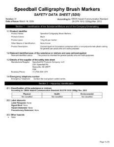 Calligraphy Brush Marker ACMI – (5124)065-0025 – OSHA SDS (EN)