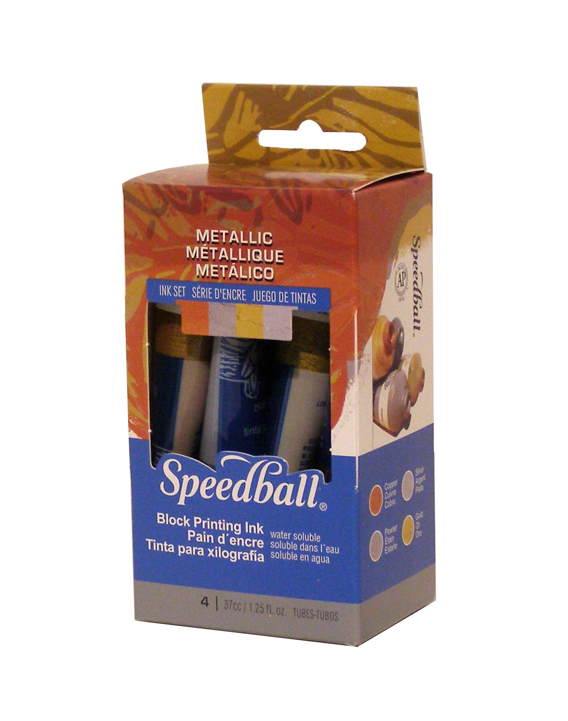 Home » Speedball Printmaking » Block Printing » Water-Soluble Block Printing Inks & Modifiers » 3473-WS-BP-Ink-Metallic-Set-Side-View