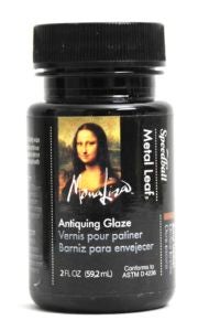 This water-based glaze is specifically formulated for metal leafing and creates a deep umber hue that gives projects an aged look. Available in 2oz. and 32oz. sizes, Mona Lisa Antiquing Glaze cleans up easily with soap and water.