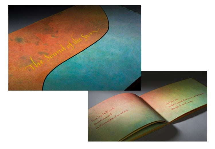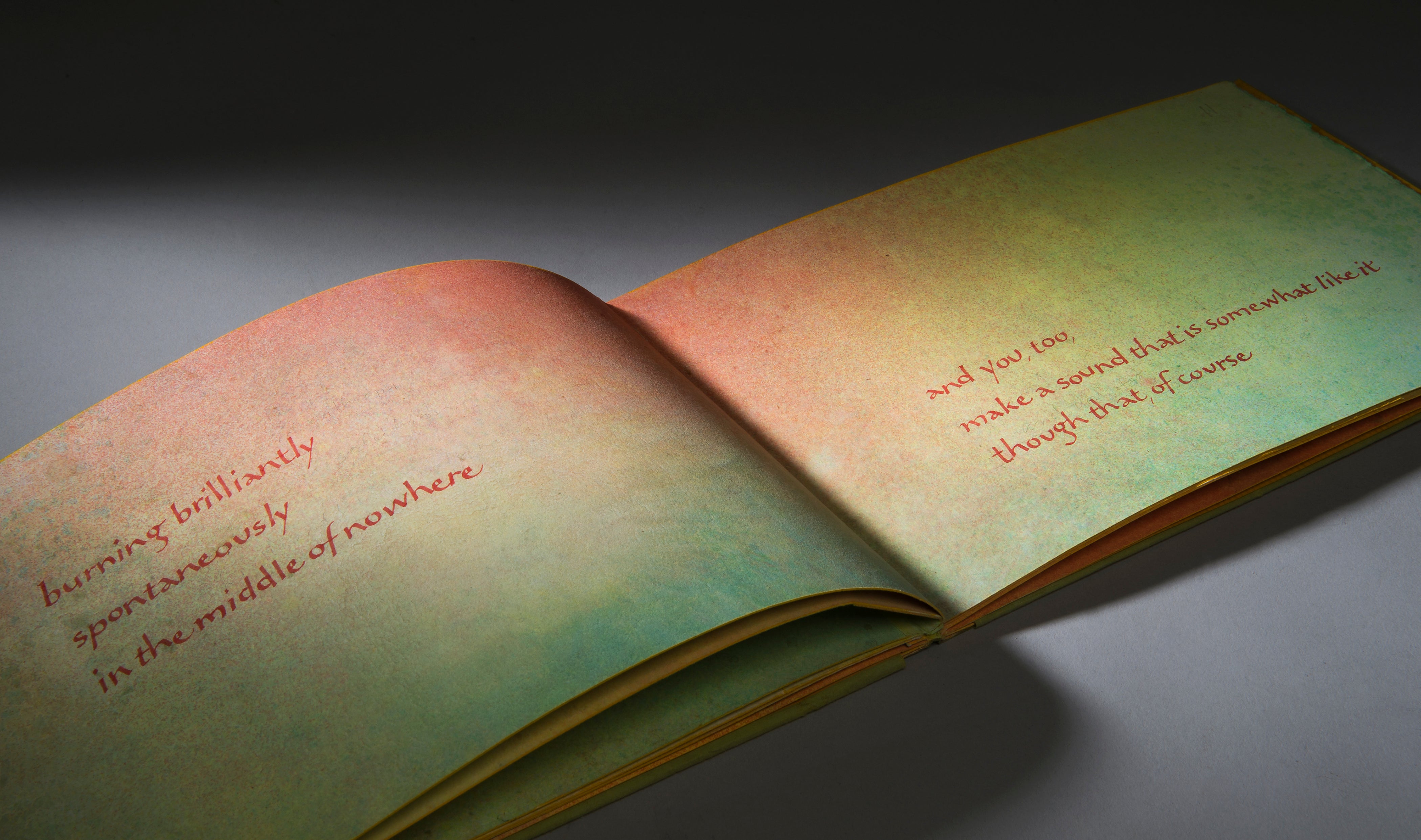 "Recently I have been working on books with content. The Arnhem paper has afforded me with weight and grain choices, that apply to covers as well a folios.When I work wet on wet, the Arnhem paper holds the line and spread equally, and gives exciting and spontaneous results. As a lettering artist, inks can be tricky with bleed, I am happy to say the Arnhem paper holds a crisp line, with text and texture. The sewing of Arnhem paper is also a plus, holes keep their stations, and happily close after construction. For me, Arnhem paper has been a delightful find in my calligraphic and book making endeavors."