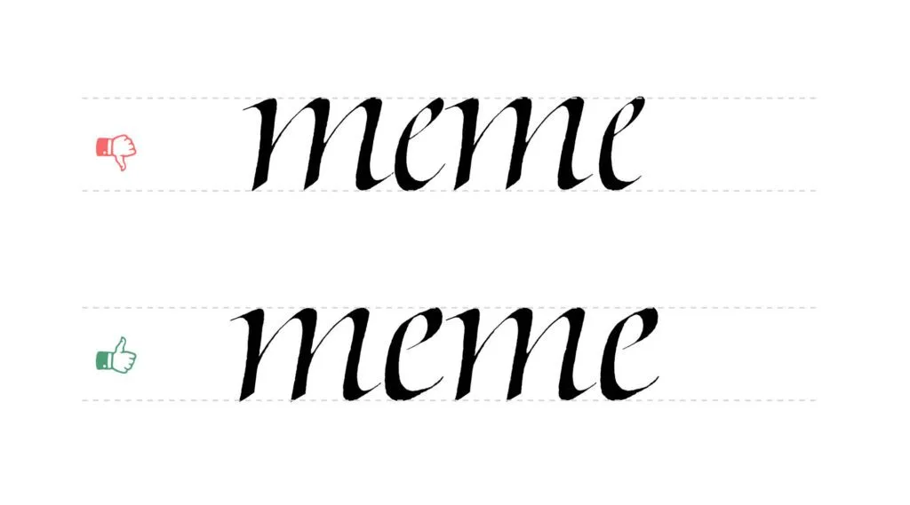 Let’s start with a useful perspective: A mistake is only a mistake within a certain context. In Western calligraphy, the most frequent design-level mistakes relate to the three core issues: