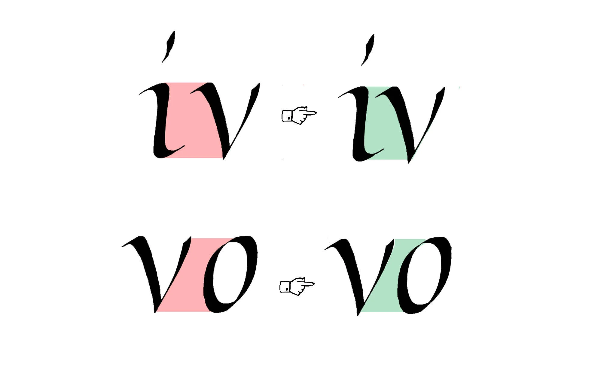 We already discussed spacing, but some cases are difficult to resolve simply by adjusting the distance between the letters. In pairs like rv or vv, it becomes increasingly difficult, and you might need to resort to ligatures to make it work.