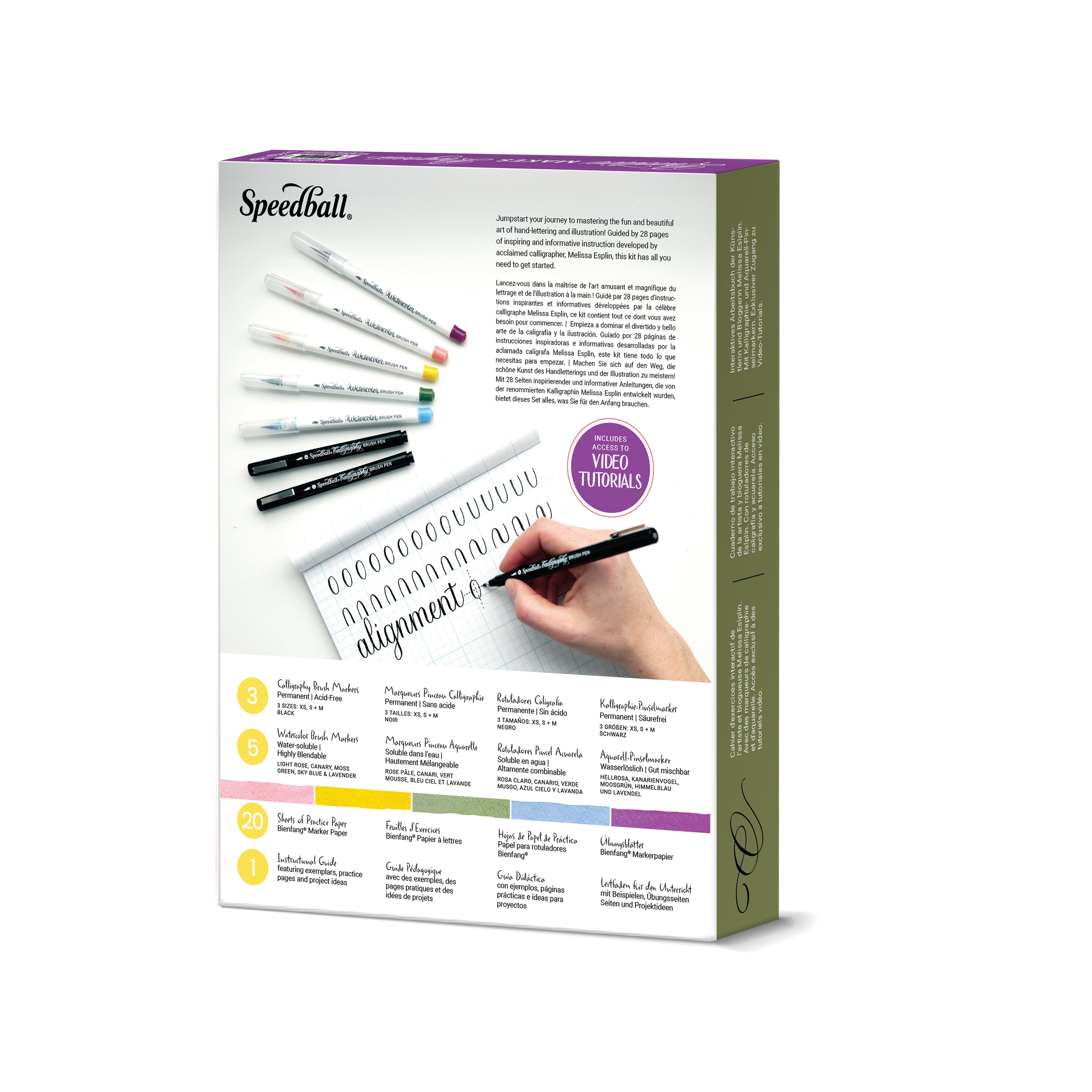 Uniquely positioned to deliver the full complement of necessary tools for hand-lettering, calligraphy, journaling and illustration, this new kit also features a 32-page instructional resource including leading exemplars, practice guides and step-by-step projects along with exclusive access to additional video resources developed by well-known calligrapher and founder of calligraphy.org, Melissa Esplin! Delivering exceptional value, this 29pc kit is truly the ONLY all-in-one introduction to these techniques and boasts the following:
