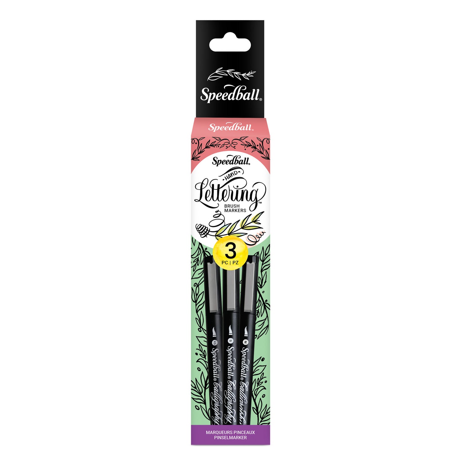 Designed for mastering modern calligraphy and brush lettering, the Speedball® Calligraphy Brush Marker Set features high-quality, durable nibs that produce a range of strokes from extra-fine to medium. Perfect for journaling, place cards, invitations, stationery, and other paper crafts, these permanent markers are a must-have for artists and hobbyists alike. This 3-piece set includes: