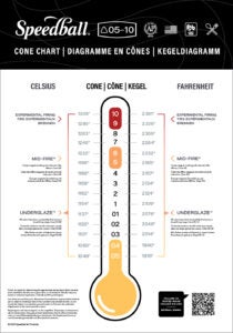 Master your kiln with our easy-to-use Cone Chart, featuring cones 05 through 10 with temperature ranges in °F and °C. Whether you're working with Speedball Underglaze™, Midfire®, or trying experimental firing, this visual guide ensures flawless results by showing the most accurate firing ranges. Click on the chart to instantly download a high-resolution PDF—perfect for your studio wall or as a classroom reference.