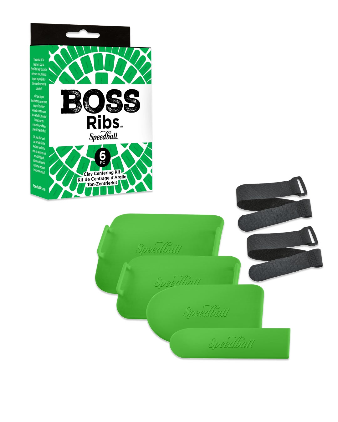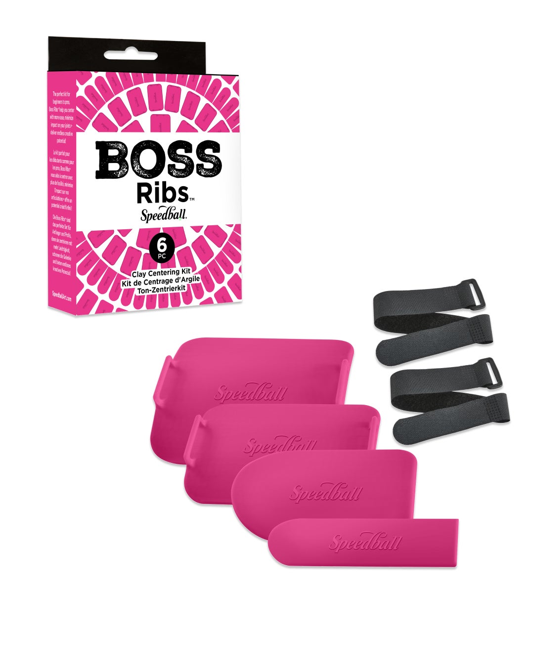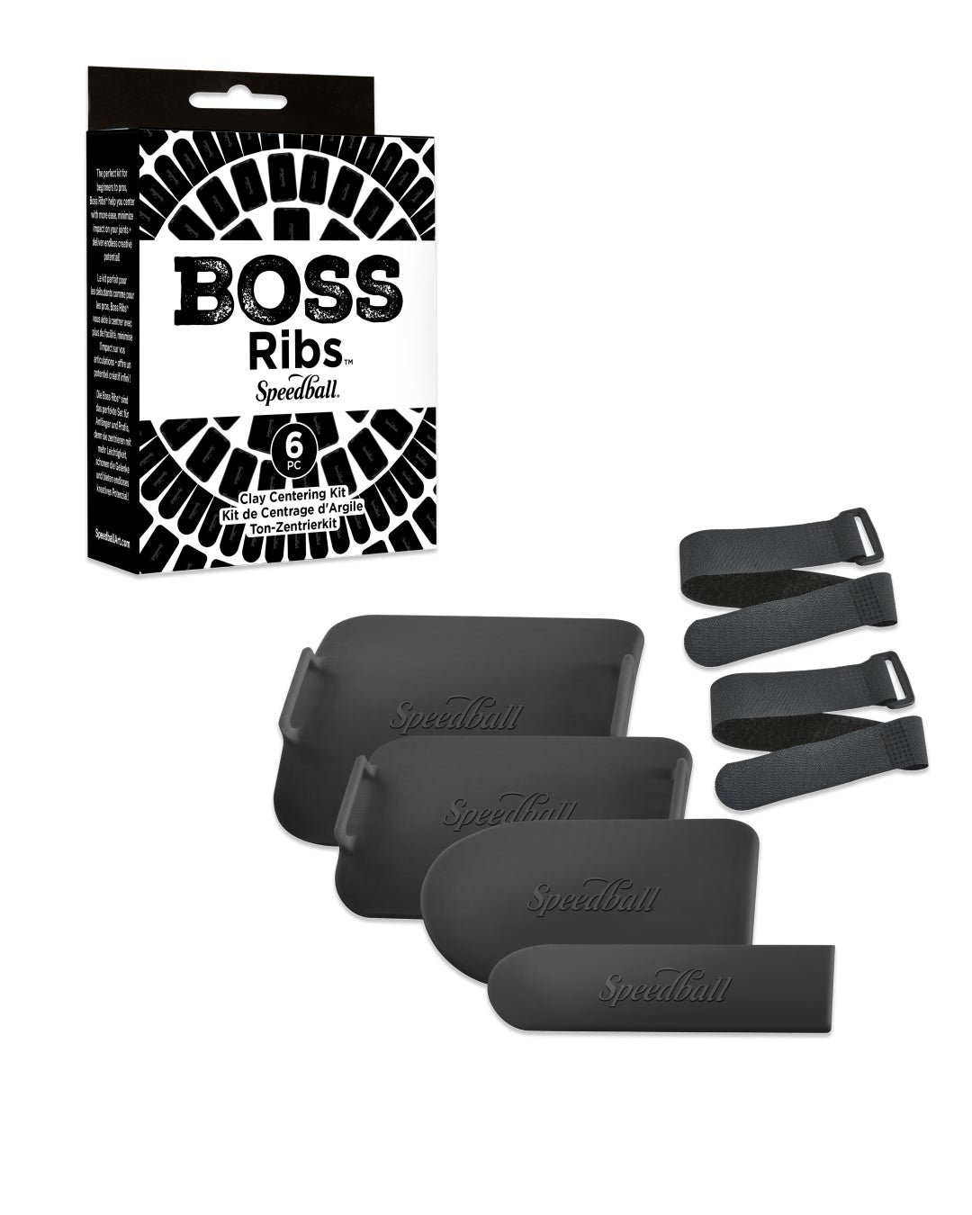 Developed in partnership with professional potter, Jennifer Whilden, the Speedball Boss Ribs allows for the ultimate ergonomic experience while delivering ease to the clay centering experience. Assisting with one of the most challenging aspects of the wheel throwing process, Boss Ribs provide additional support to aspiring potters to learn the centering process, minimize wear and tear on joints for seasoned potters and allow artists with sensory or mobility restrictions an opportunity to return to the wheel.