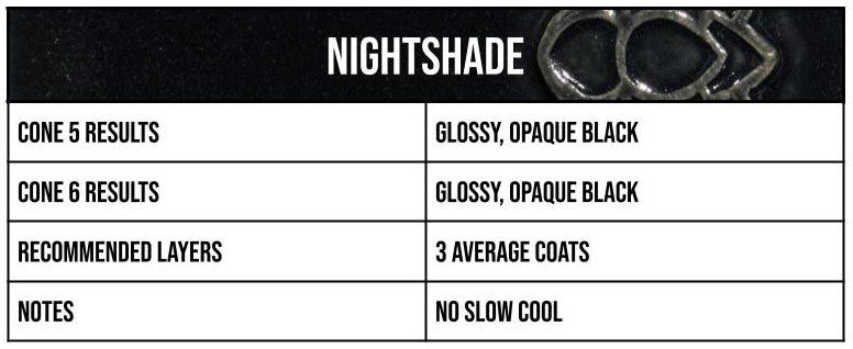 Home » Our Product Lines » Ceramics » Underglazes and Glazes » Mid-Fire™ Glazes » Dragon Stone » Nightshade Card