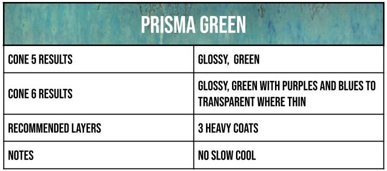 Prisma Green is a glossy, opalescent glaze that brings a heightened level of sophistication to any ware! Green sets the tone for the event, but it also promotes various undertones as it shifts its position in the light. Prisma Green is great with a standard application and is also great for layering with other colors.