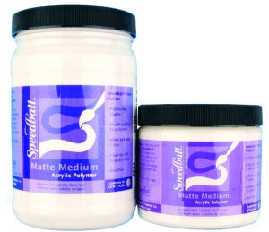 Speedball Matte Medium is used for extending Speedball Acrylic Paint and minimizing gloss. It can be used as a substitute for gesso on canvas when a translucent ground is desired. This medium may be used as a top coat to create a "flat" finish. Great for collage, decoupage, scrapbooking, altered book-making and faux finishing. Available in pint, quart and gallon sizes.
