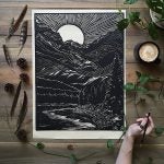 She came to printmaking after a traumatic brain injury compelled her to leave her corporate job in DC, and she has found recovery and peace in both art and hiking. She combines her passion for both in Rise + Wander, her art business that doubles as a personal reminder to get up and outside.