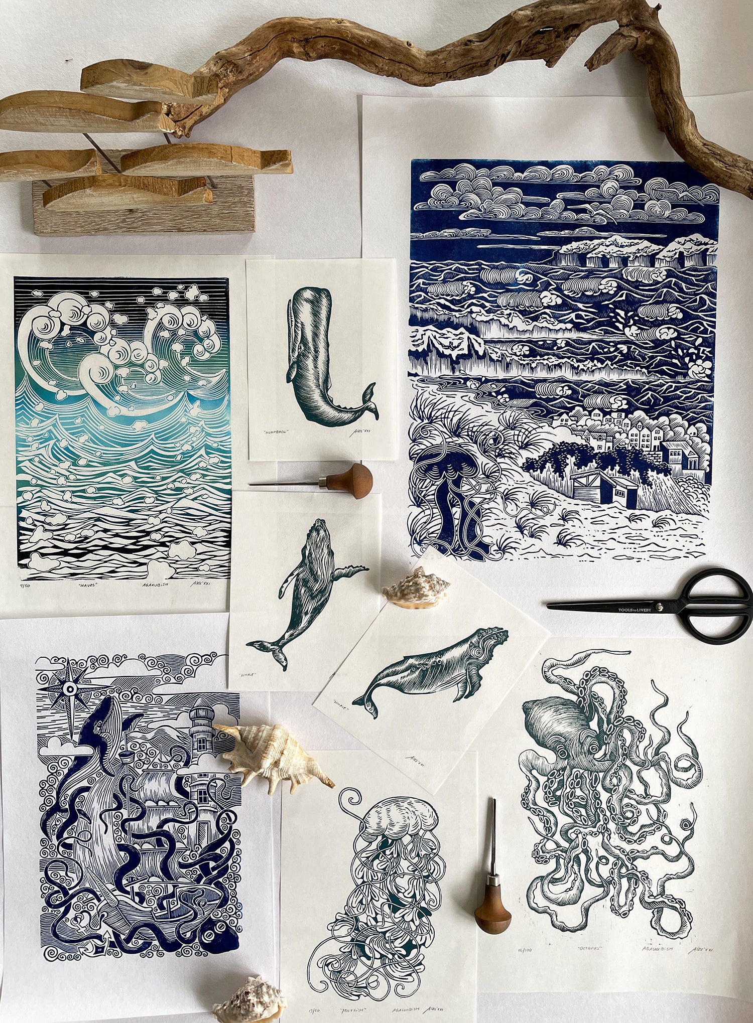 Aga is a fine artist, printmaker and illustrator based in North Somerset, the United Kingdom. Dedicating herself to botanical, nautical and architectonic illustrations for the past few years Aga has created a unique and extremely high detailed recognisable style. She discovered printmaking in March 2021.