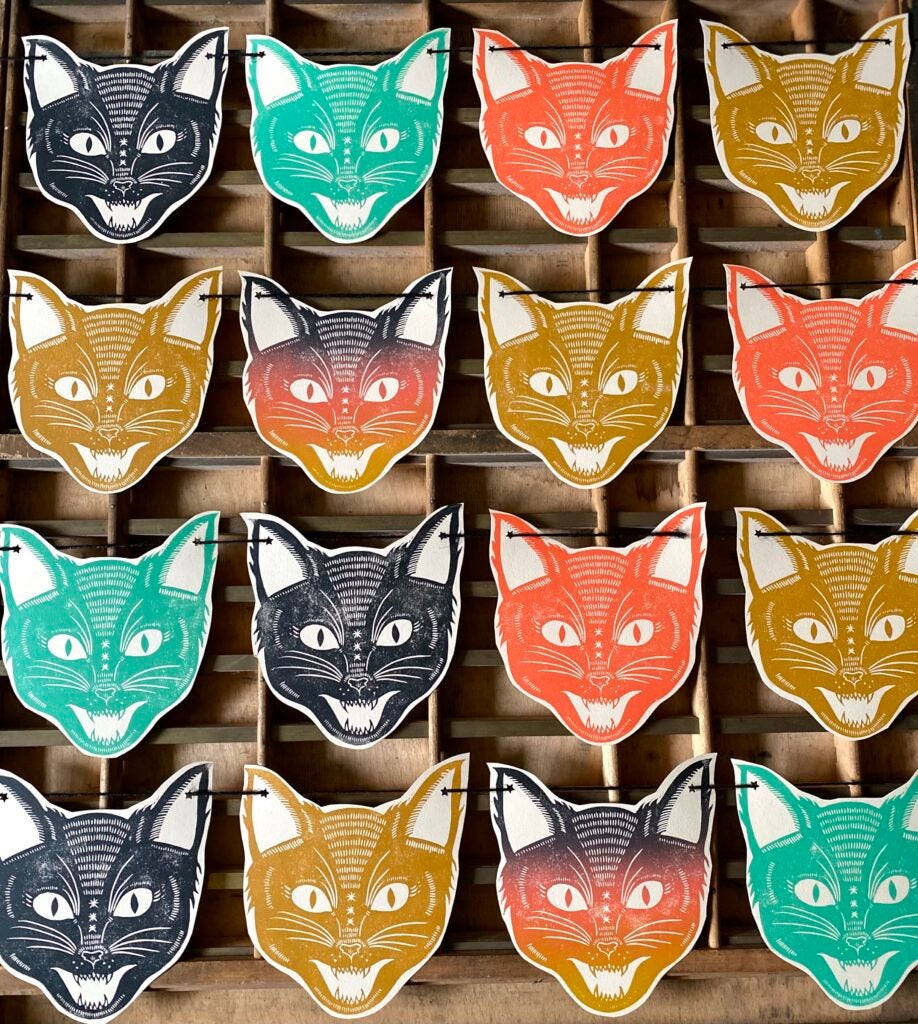 I love to explore texture and color through my printmaking techniques; layering different types of ink, creating patterned backgrounds to be printed over, seeking out various kinds of paper. I love to experiment with how these things can transform the mood of a print. I also love to use printmaking to create usable art, like garlands and greeting cards. Printmaking has always felt like a magical, transformative experience to me; my goal is to translate that magical feeling into my finished pieces.