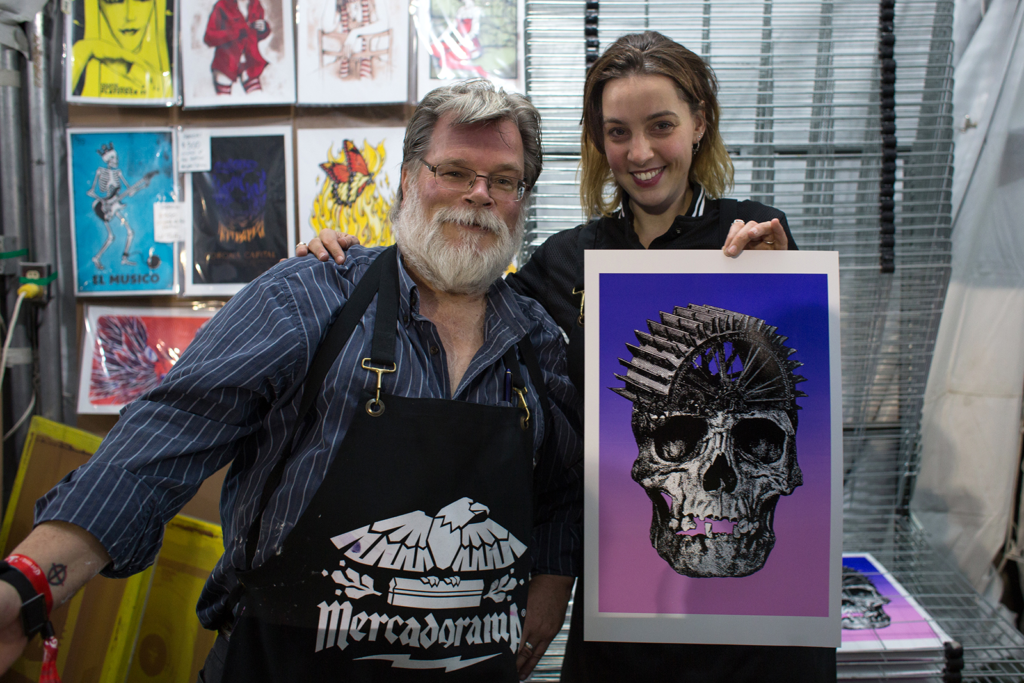 In addition to Wachiay Studio and since 2005, he developed live screenprinting demonstrations for the American Poster Institute (API) at Flatstock Rock Poster Shows in Seattle, Austin, Barcelona and Mexico City. He provides specialized consulting & training to screenprinters around the globe, including small one person studios, universities, and commercial clients such as Nike. Recently he was at the Advanced Materials lab at University of British Columbia, installing their first screenprinting press for research into flexible electronics and textiles.
