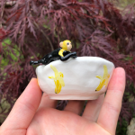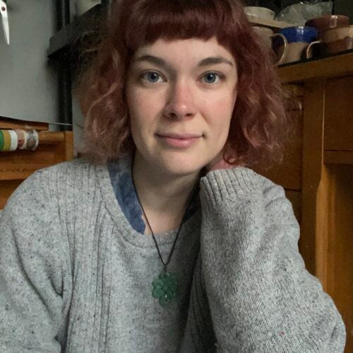 Hi! I’m Ash. I was born in upstate NY and now live in the beautiful Nova Scotia with my hubby and animals. I’ve always loved art, but did a number of different jobs before starting my journey as a full time artist in 2014. My growth as an artist has been constantly influenced by the kindness and support of others, what an amazing environment to flourish in!! I have been fascinated by ceramics since I was maybe 5 or 6 years old, but always thought it was out of my reach. Through a lot of encouragement, hype, and total enabling from Justin my hubby and Dani my friend and ceramic mentor, I took the plunge in November 2019 to get some basic supplies, February 2020 I bought my first kiln, April my first wheel, and then my second larger kiln came along a few months later. Safe to say I’m head over heels in love with this medium! Thank you for coming along the journey with me! <3 Ash