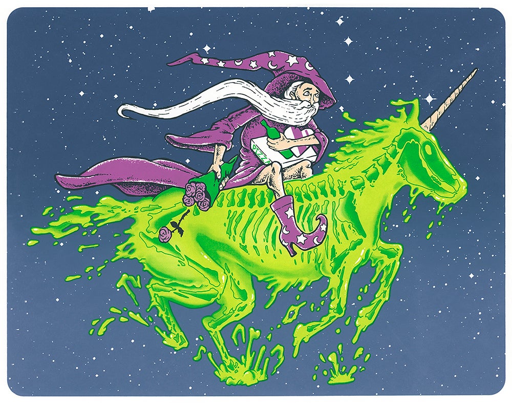 Our favorite Speedball products are the acrylic screen printing inks. We love bright, saturated colors and the Speedball ink is the perfect product for that. It suits our process because it doesn’t dry in the screen while we are registering or dealing with a mid-run problem. We keep a small spray bottle of water to rehydrate the ink and screen surface occasionally. We love mixing in the transparency base to try and achieve bonus colors in a design using color overlays. Some of our favorite colors include the Peacock Blue, as well as the process and fluorescent colors.