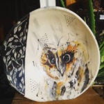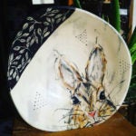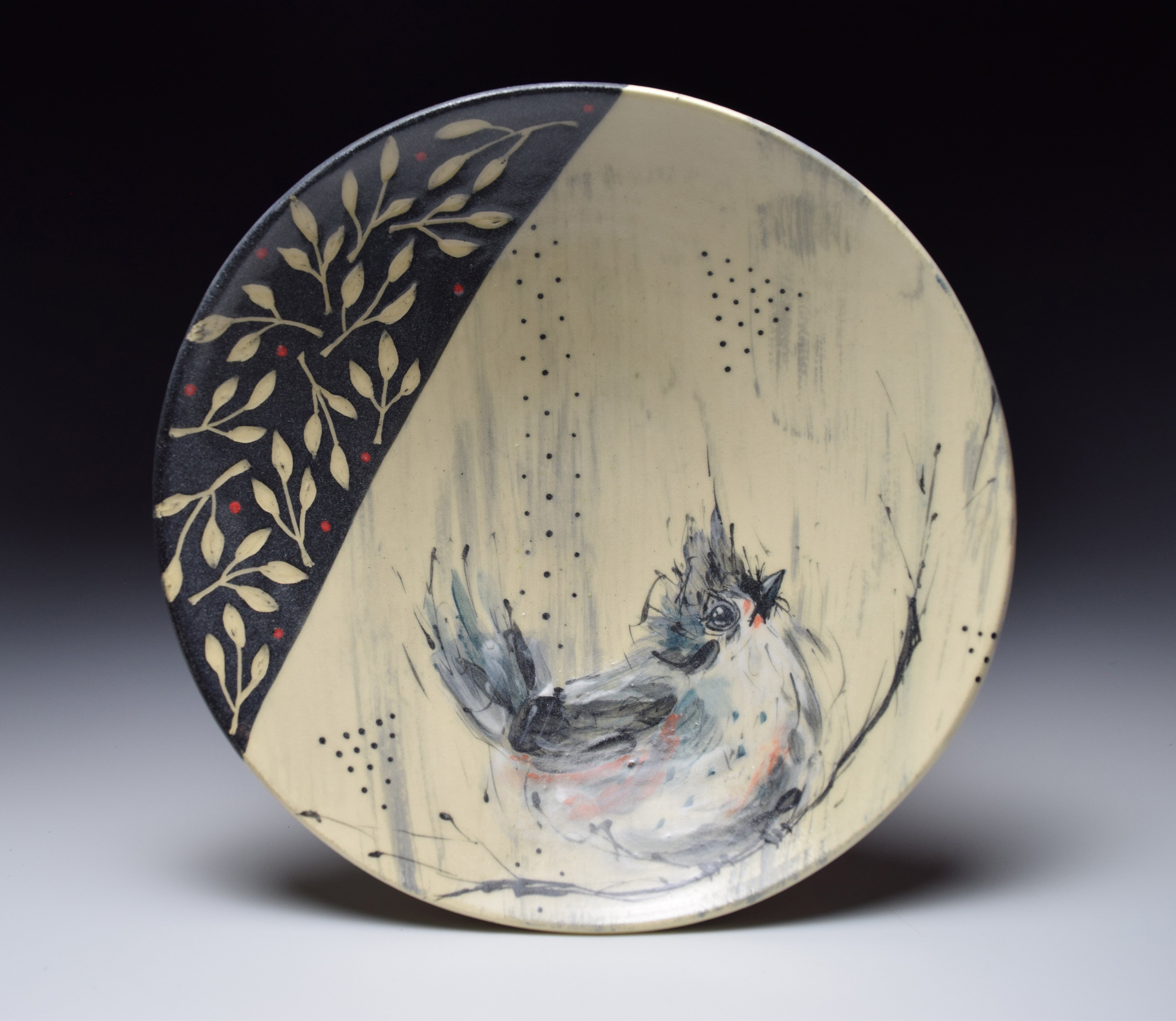 I have since moved back to this area of Kansas and own the property right next to where I grew up. This sparked a sense of nostalgia that allowed me to again tap into that creative side of my childhood. The theme of my ceramic work often revolves around using the ideas from my own personal sketchbook. I enjoy finding something that speaks to me and then quickly sketching it in pencil through rough, gestural simple sketch lines. I then use these sketches that I feel captured my feeling at the moment as the subject matter for the surface treatment on various hand built or wheel thrown forms. I can bring color to my work using Speedball Underglazes whereas the sketchbook is simply pencil. Each line is created by me, vibrant and eye catching, bringing out the playful side of humanity reminiscent of my childhood coloring book days. I loved that feeling of honest expression without a care in the world. That, in essence, is what I am attempting to capture and convey in my work.