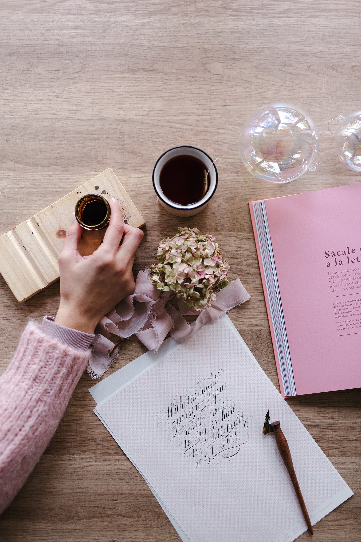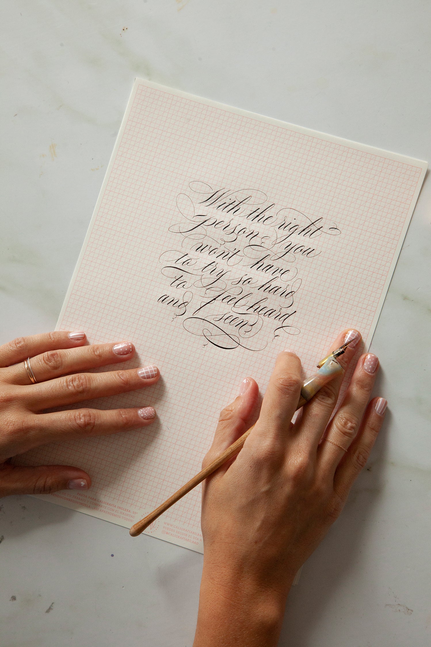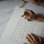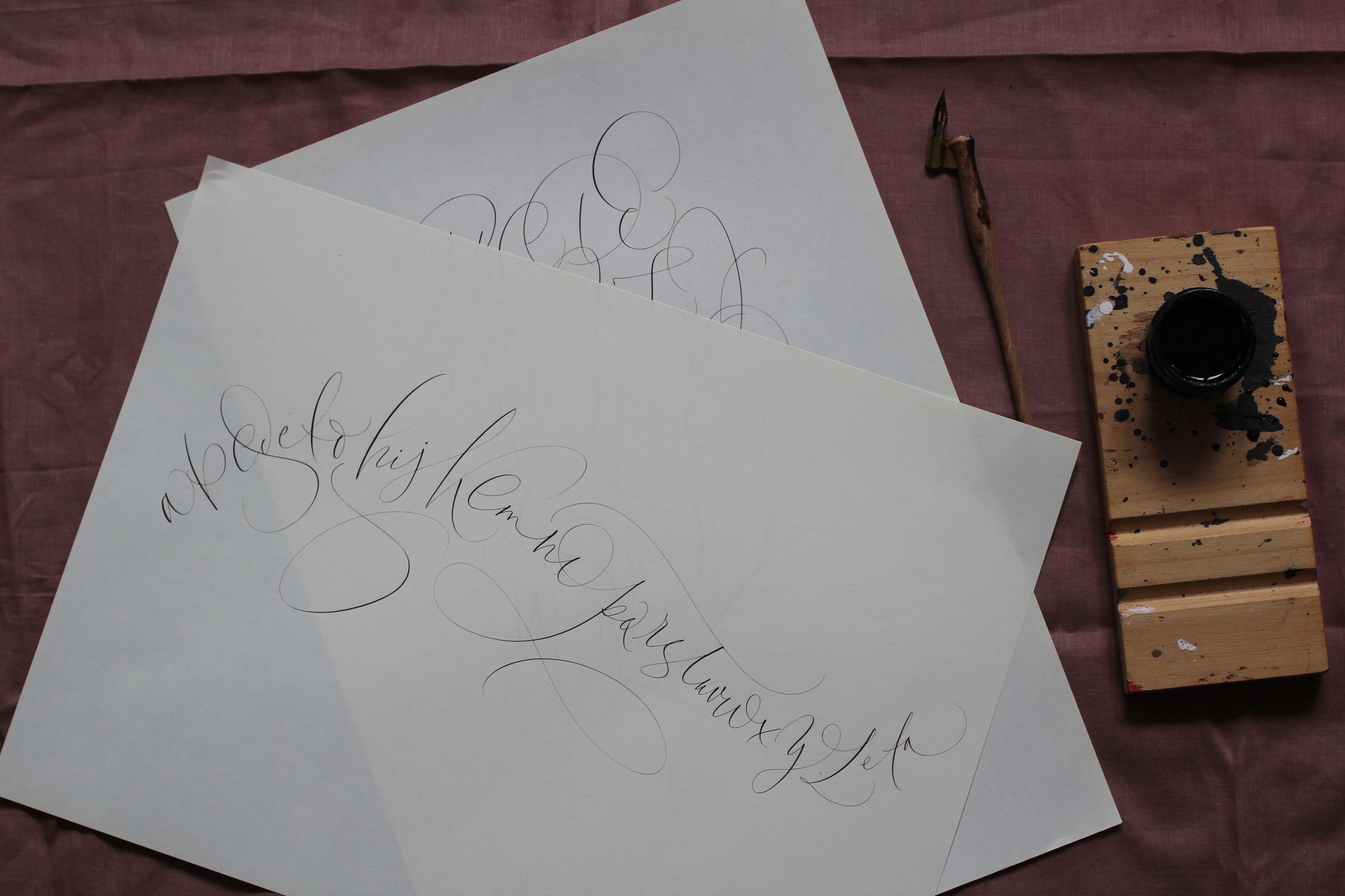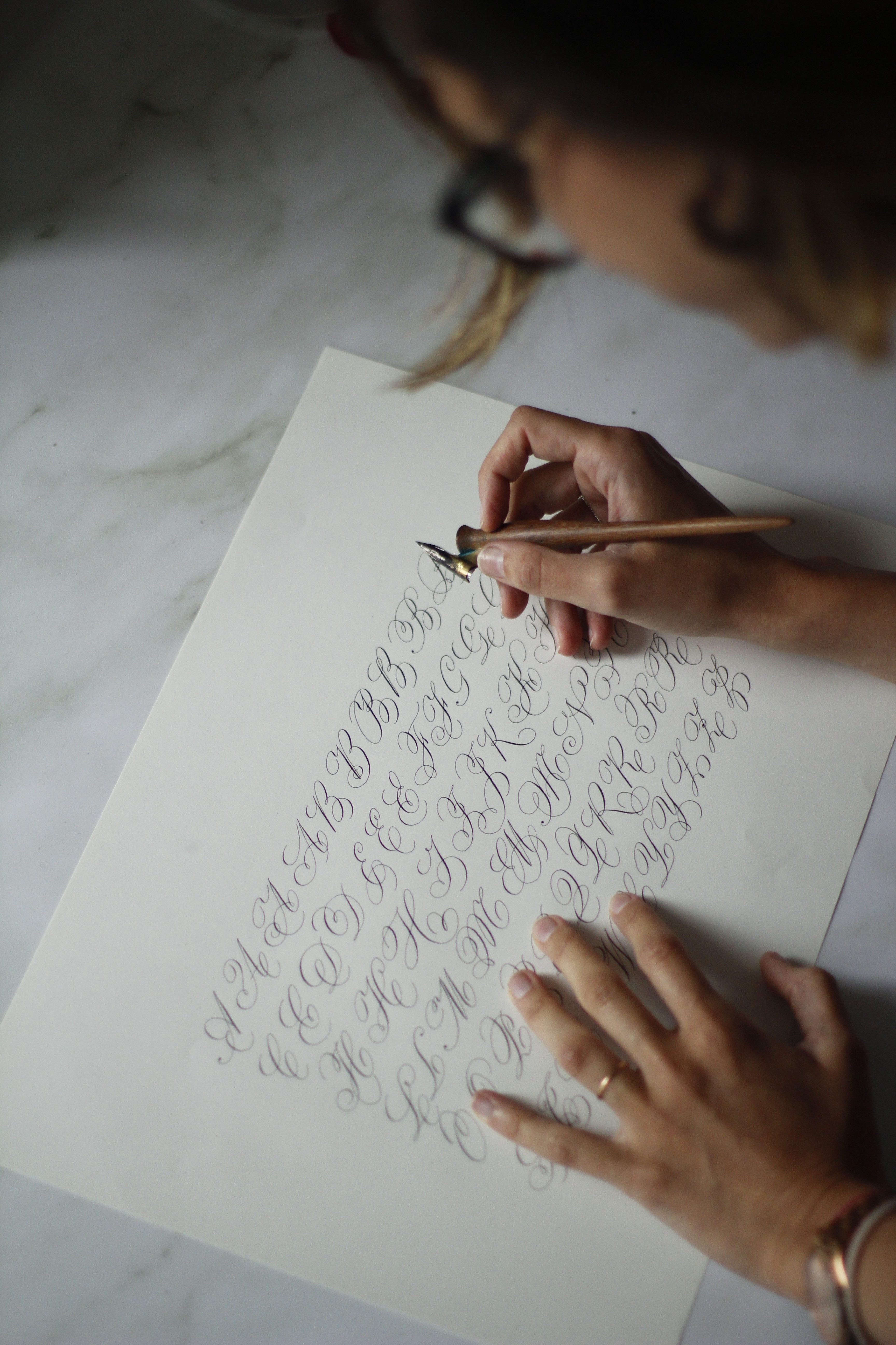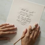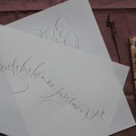In “Caligrafía Bilbao”, she teaches what she knows and what she keeps constantly learning in order to preserve and spread a trade that demands persistent practice and passion. She has also taught numerous calligraphy courses on the different varieties such as English, brush pen, Gothic, uncial, Roman and expressive in universities, cultural centres, associations, etc. She has even taught in South America. She balances her teaching with her work for different luxury brands (Dior, Vogue, Jo Malone…) and creates wedding and event invitations as the ones that made an impression in the Montblanc culture awards held in the Guggenheim Museum in Bilbao. In recognition of her outstanding work, she was selected for the exhibition “Caligrafía hoy. Del trazo al concepto” (“Calligraphy today. From the stroke to the concept”) that was held in the National Library in Madrid that gathers the work of the best international calligraphers. Bego is also the author of the first manual on English Calligraphy published in Spanish.