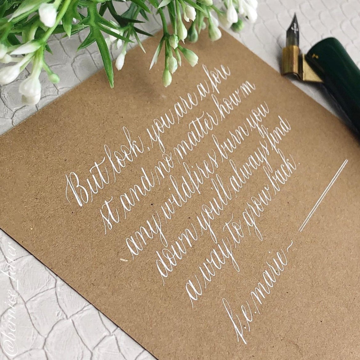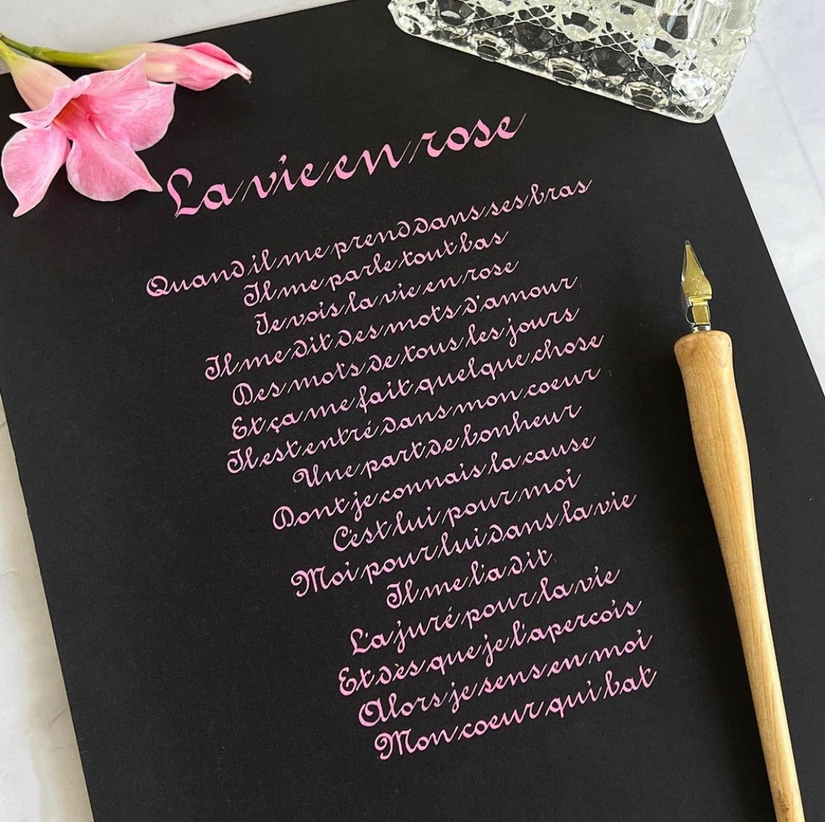 Bernice van Overbeek is a Dutch calligrapher but most of all mom of 3. She’s a former psychologist specialized in autism, until she had to stop her own practice in 2012 due to chronic illness. Being homebound, she was in search of a new hobby. Through Instagram, she discovered pointed pen calligraphy in 2018 and didn’t stop writing from the first time she held an oblique pen.