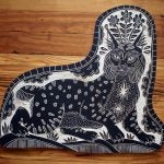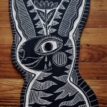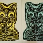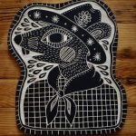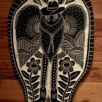 Bryn Perrott lives and works in Morgantown, West Virginia. She graduated with a BFA in Printmaking from West Virginia University in 2004. Bryn’s artwork references tattoo imagery, print history, and her love of animals. Though woodcuts are her predominant medium of choice, she also paints and draws extensively. Her work is in many private collections, national and international. Bryn has worked with major touring acts, authors and companies such as Jackie O’s Brewery, Handymaam, Tommy Orange, Lucero, Laura Jane Grace, Jenny Lewis, All City Cycles and Cory Branan to design album art, t-shirts, guitar pedals, skis, prints, jewelry, coffee packaging, beer cans, book covers and more. She is often recognized by her internet identity, DeerJerk. When Bryn isn’t working on the next woodcut, she spends time with her cats, Mole and Rama, quotes Terminator and drinks coffee.