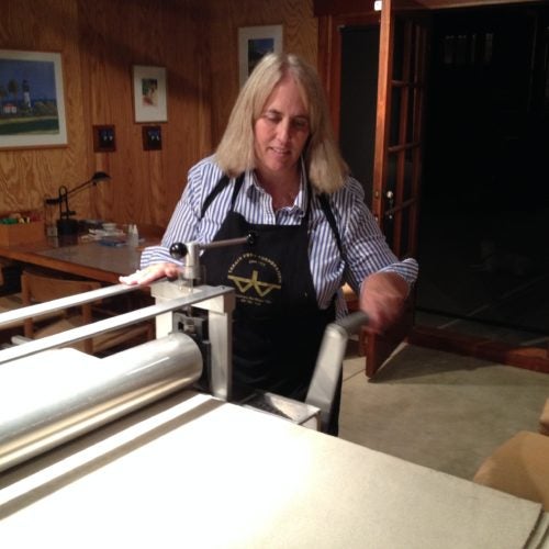Carolyn James is an artist, teacher and proprietor of Green Dog Workshop in Los Angeles, California. Carolyn’s weekly workshops offered at the Armory Center for the Arts in Pasadena, CA have focused on non-toxic and hand-pressure printmaking processes for many years. She enjoys giving her students the tools they need to develop their work in a safe and professional environment.