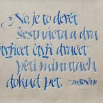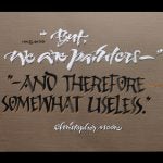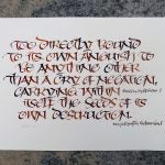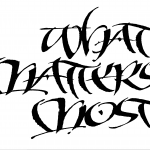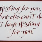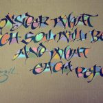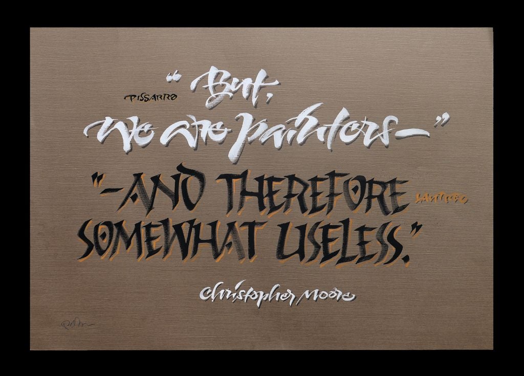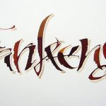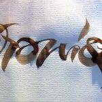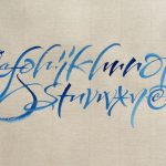 “Drawn lettering has been part of my personal artwork since grade school. My introduction to formal calligraphy came at Humboldt State University in 1973, via Reese Bullen. My first calligraphy teaching job was at Colorado Mountain College in Vail, CO, 1976.”