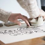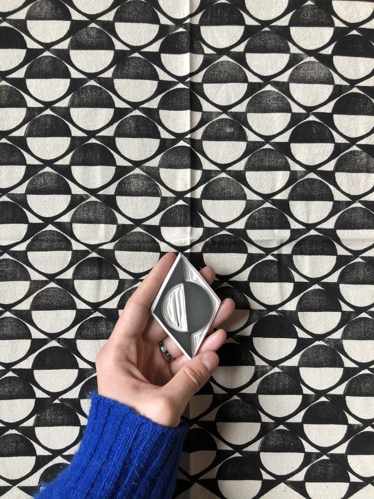 With little block printing instruction, her printmaking work is primarily self-taught, and she’s always learning and experimenting as she goes. Chandlyr uses block printing as a way to create minimal, abstract and geometric patterns for products such as tea towels. Her patterns are of high contrast touched with bold pops of color.