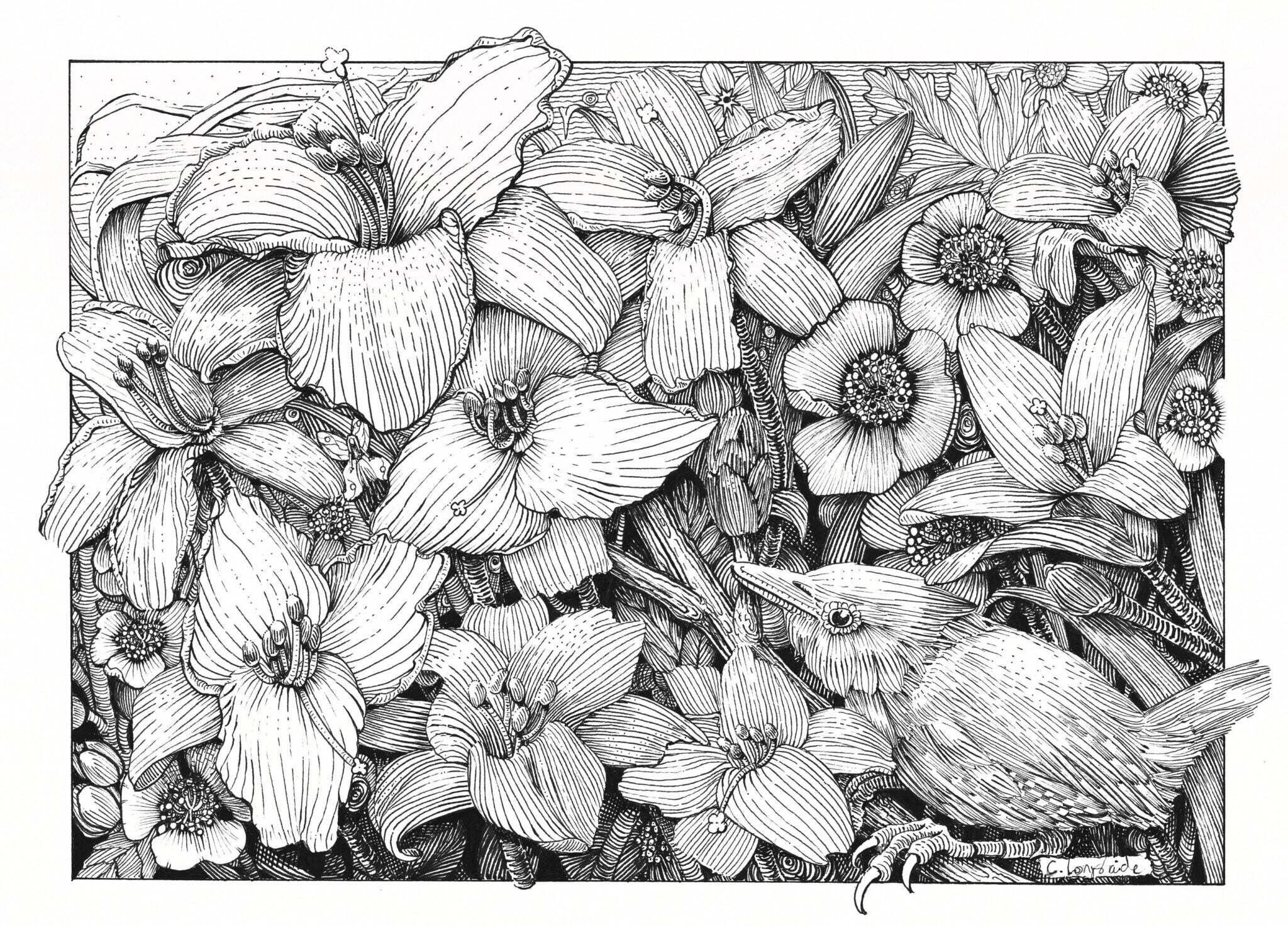 Pen and ink is a fascinating, ancient medium with unique characteristics. From deciding which tools to use to making sense of technique, the opportunities to develop as an artist are limitless. The two things that have helped me grow the most as an illustrator are doing art challenges and studying legendary masters. Those who have most influenced my style include Franklin Booth, Moebius, and Bernie Wrightson.