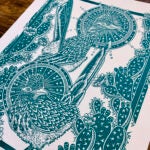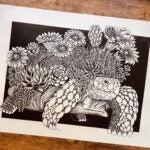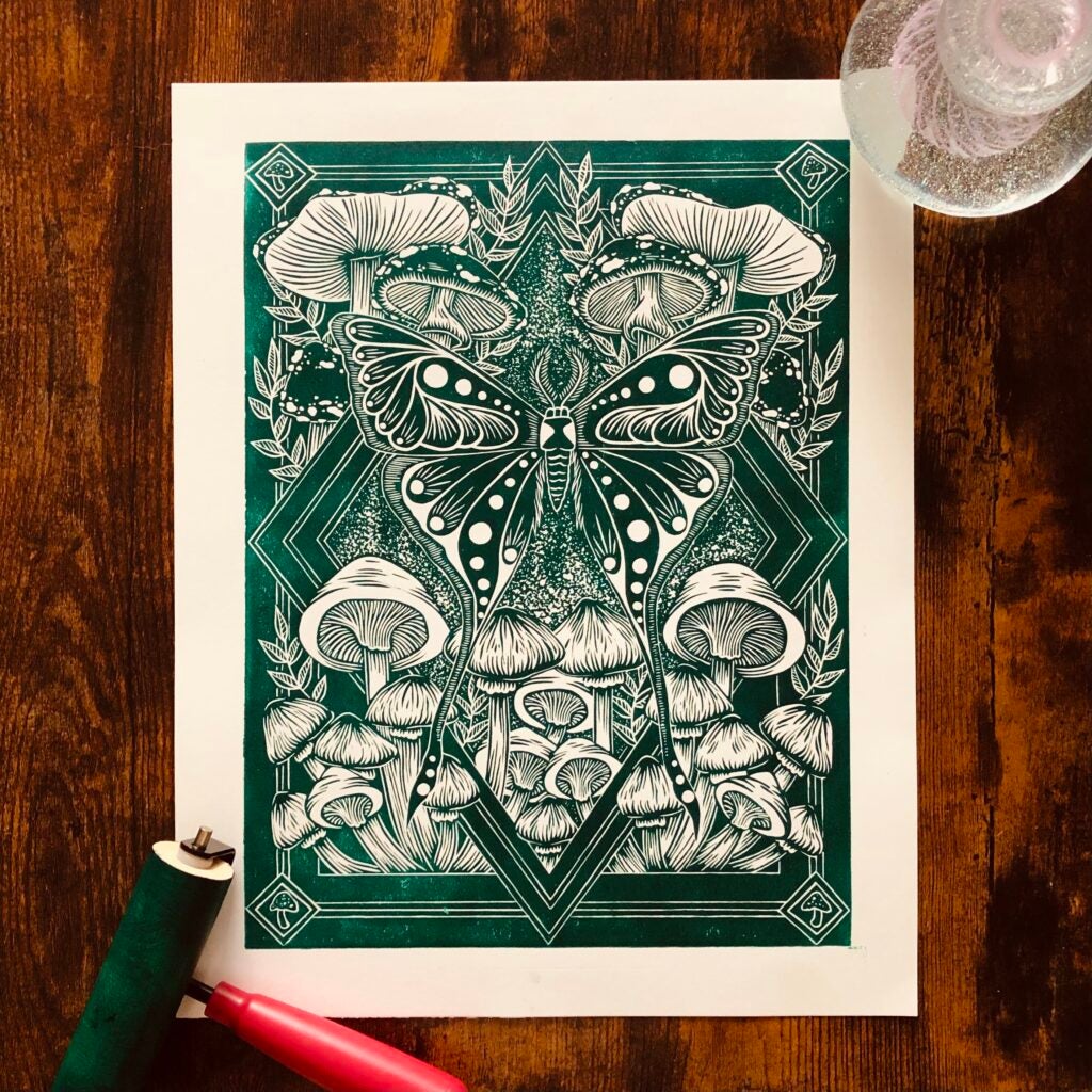 I am a relief printmaker based in Austin, Texas, but I am originally from a desert town in Southern California. Being from an extremely dry climate, the humidity of Texas took some getting used to, but occasionally a dry heat will blow through and would remind me of my hometown and childhood. Thus, the name “Dry Heat Press”! To this day, whenever I head back to Southern California; it can be 105 degrees and I will still say it’s beautiful outside because “it’s a dry heat”.