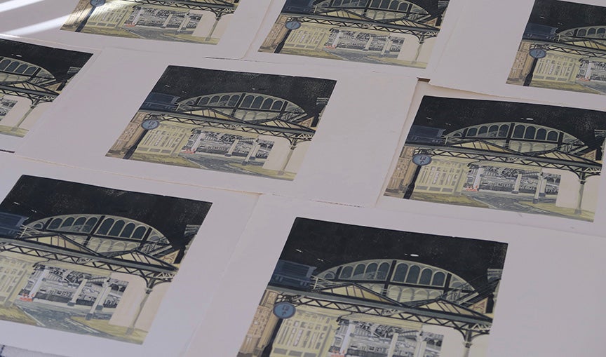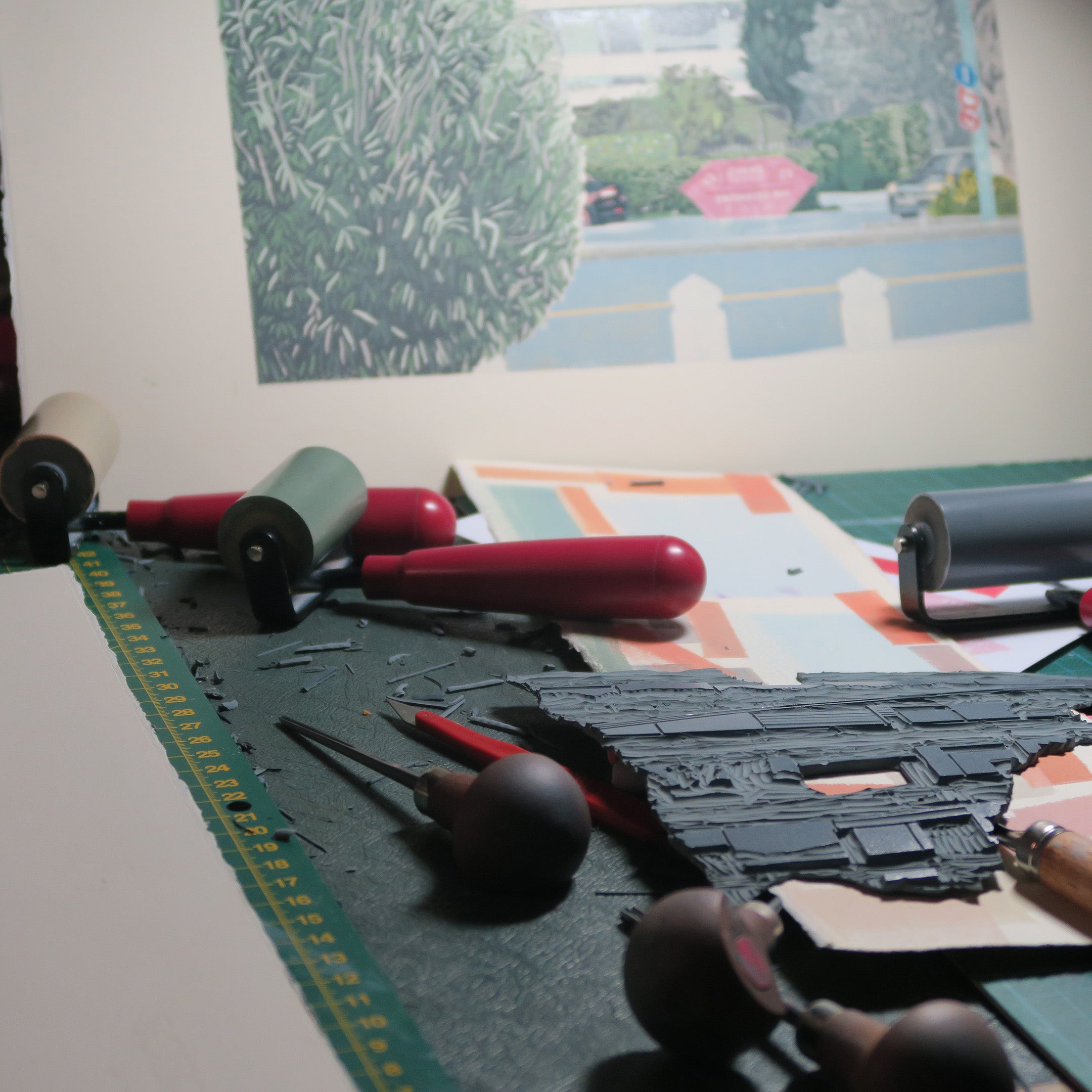 This time consuming approach earned Dan the Anthony Dawson Young Printmaker of the Year award in 2016 and consists of cutting the linoleum into a jigsaw-like state, before piecing it back together to form an image. Best known for his architectural prints that consist of anywhere between 30-90 reductions, Dan is now entirely focused on animating lino in order to tell stories and make an isolating medium more collaborative.