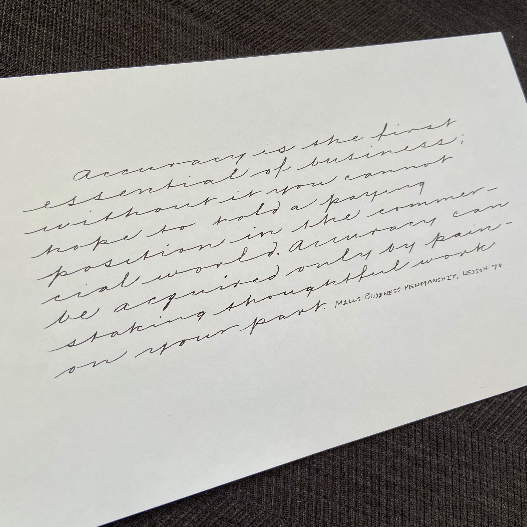 “When I first became interested in penmanship, I became a member of IAMPETH and looked in their directory to see if any other members were in Kalamazoo. This led me to my first teacher, Dr. Bob Hosack, who was teaching a beginner’s calligraphy class in the area. He charged $20 for the class (4 sessions, 2 hours/session) and provided a pen, ink, paper, and the Speedball Textbook to every student. His generosity and passion for calligraphy is inspiring.”