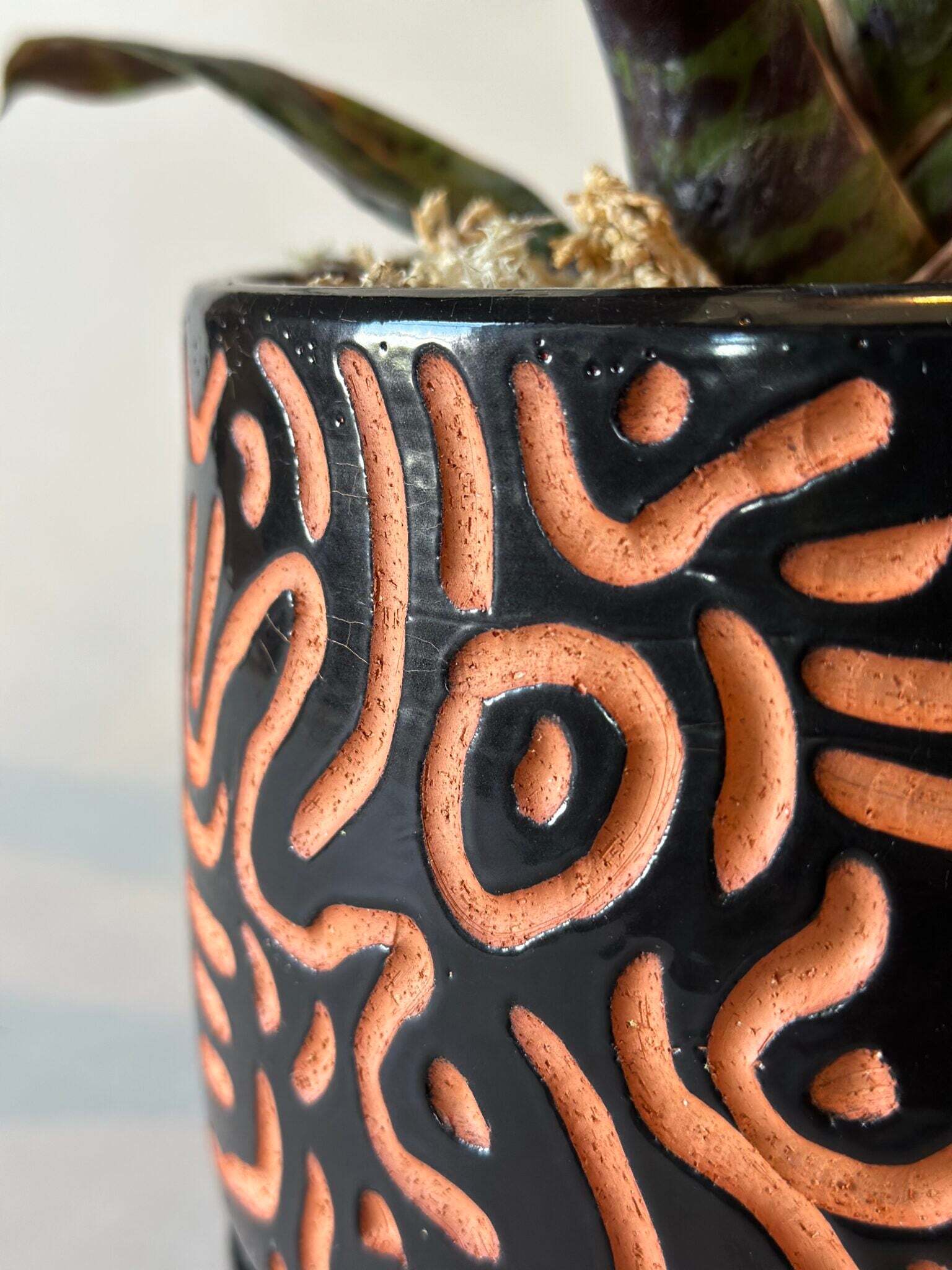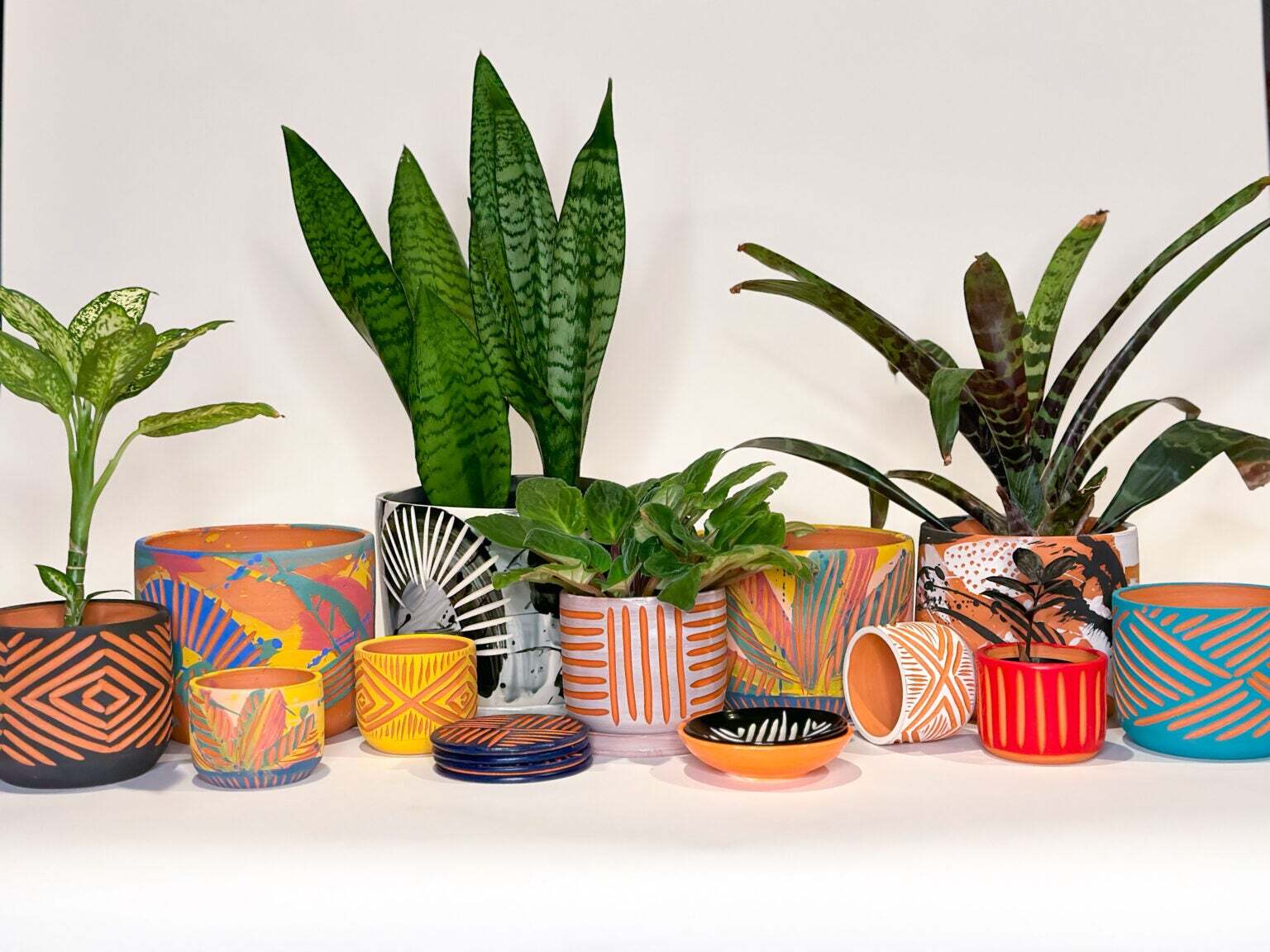Diana Adams, founder of SampleHAUS, started her ceramic journey at Cal State Dominguez Hills in 2005, and is now a full-time potter working in Long Beach, California. Her work is eclectic, graphic, and colorful; finding inspiration in African tribal markings, and color/geometric nods from the Bauhaus movement. She has had opportunities to work with Tia Mowry x Etsy in a home line collaboration, sells her work on West Elm online store, and thrives to build the black ceramic community on social media.