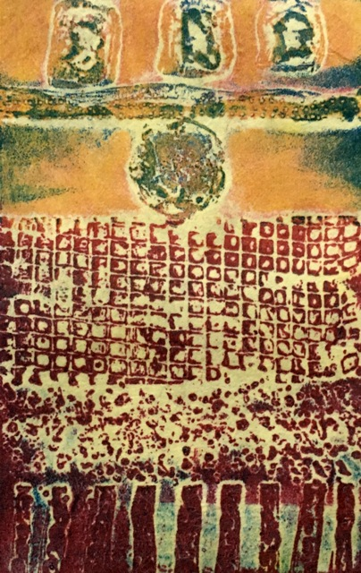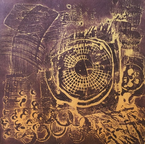 My work explores circular imagery that evokes science, spirituality and the invisible, positioning the viewer in art history and a diversity of cultures. The circle is my iconic image. In searching for a distinct abstract vocabulary, I find inspiration in sources such as solar systems, metaphysical thought, microscopic science and the bounty of nature. Blending these influences into visual form, I push for innovative methods to express the drama, vitality and truth that I seek to embrace. I work in series that combine content and technique with the gesture of the hand evident in the work. Printmaking processes excite me. When engaging an image, there are limitless possibilities to choose from. I like crossing boundaries, experimenting and layering multiple techniques to discover the core meaning in my work. Each new process reveals truths about the marks and nuances of the plate and paper surface, adding to the enigma of the finished piece. Trained in traditional print methods, I have found this foundation invaluable for breaking the rules, yet maintaining a high level of craftsmanship. Combining old techniques with new materials always pushes my work to become more than it has been, clarifying the themes I have worked with throughout my professional career. There is magic in the pressing of paper to plate, a birth and a marriage all at once. Experiencing that emotion is at the core of my practice with all of its ramifications. My studio is completely non-toxic as well as the venues in which I teach.