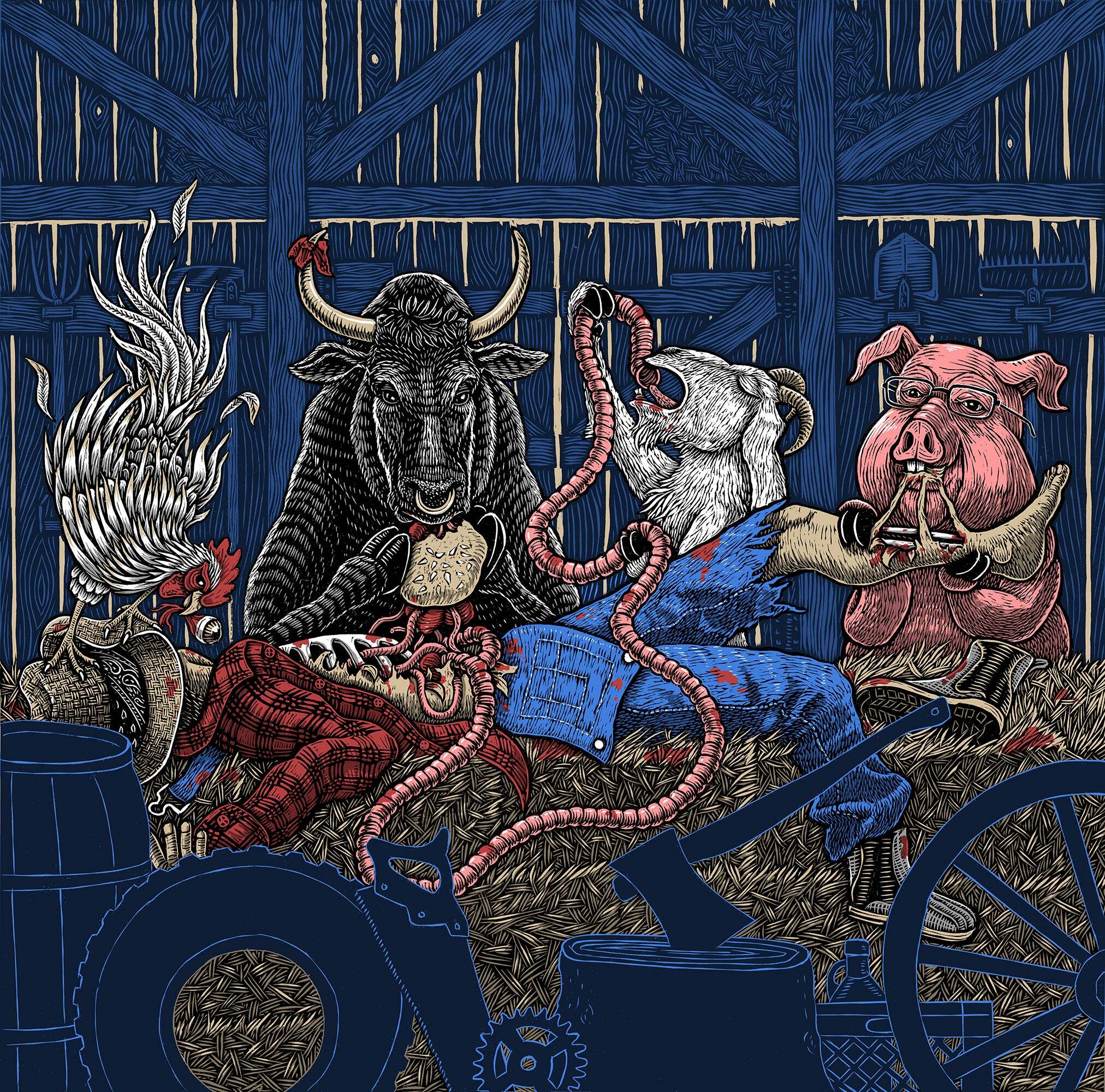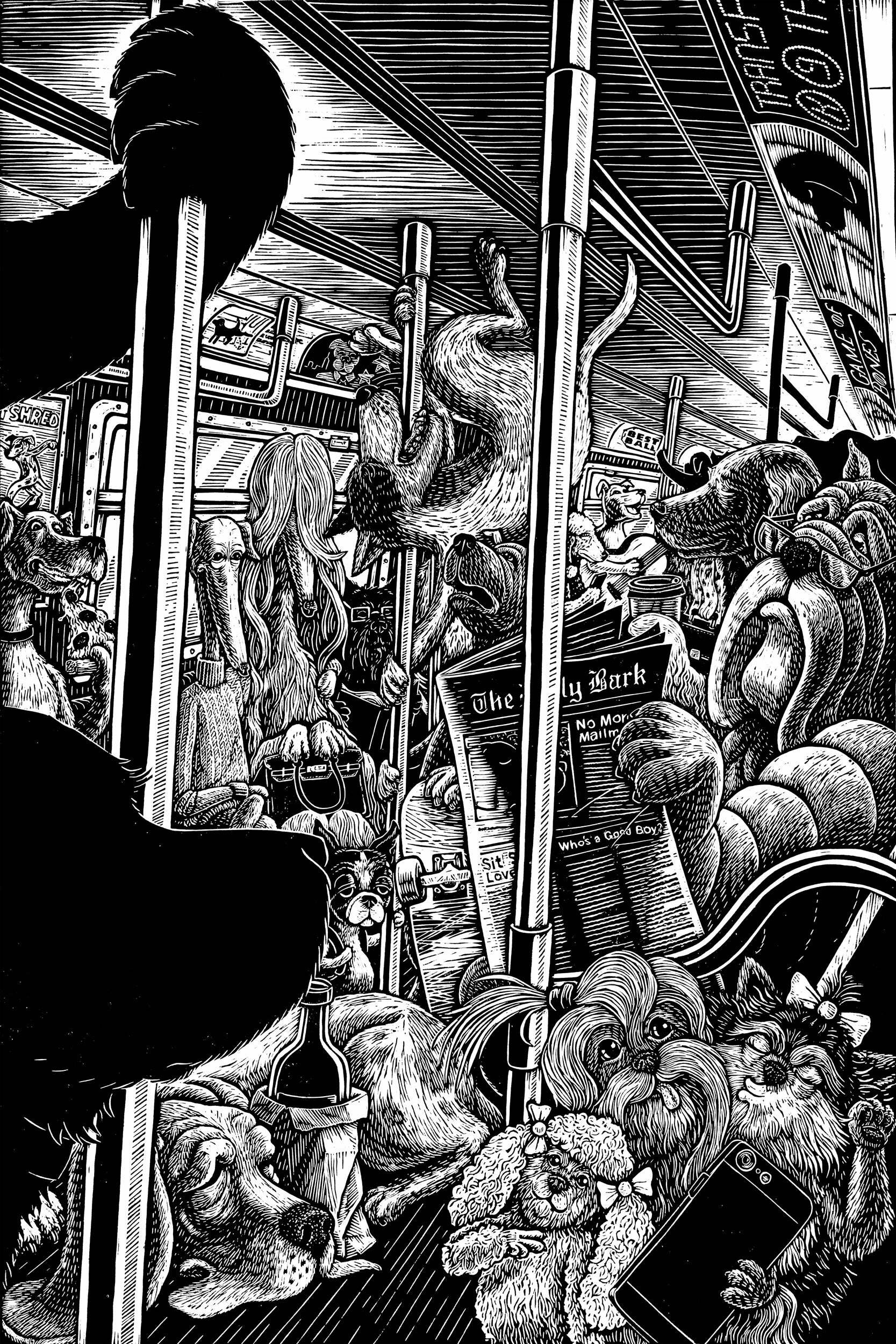 Dylan Goldberger is an illustrator and printmaker based in Brooklyn, NY. He grew up in New Rochelle, NY and moved to Brooklyn in 2007 to attend Pratt Institute, graduating with a BFA in Communication Design. He creates detailed, boldly-lined woodcuts, linocuts, and screen prints and creates digital illustrations using a visually similar technique.