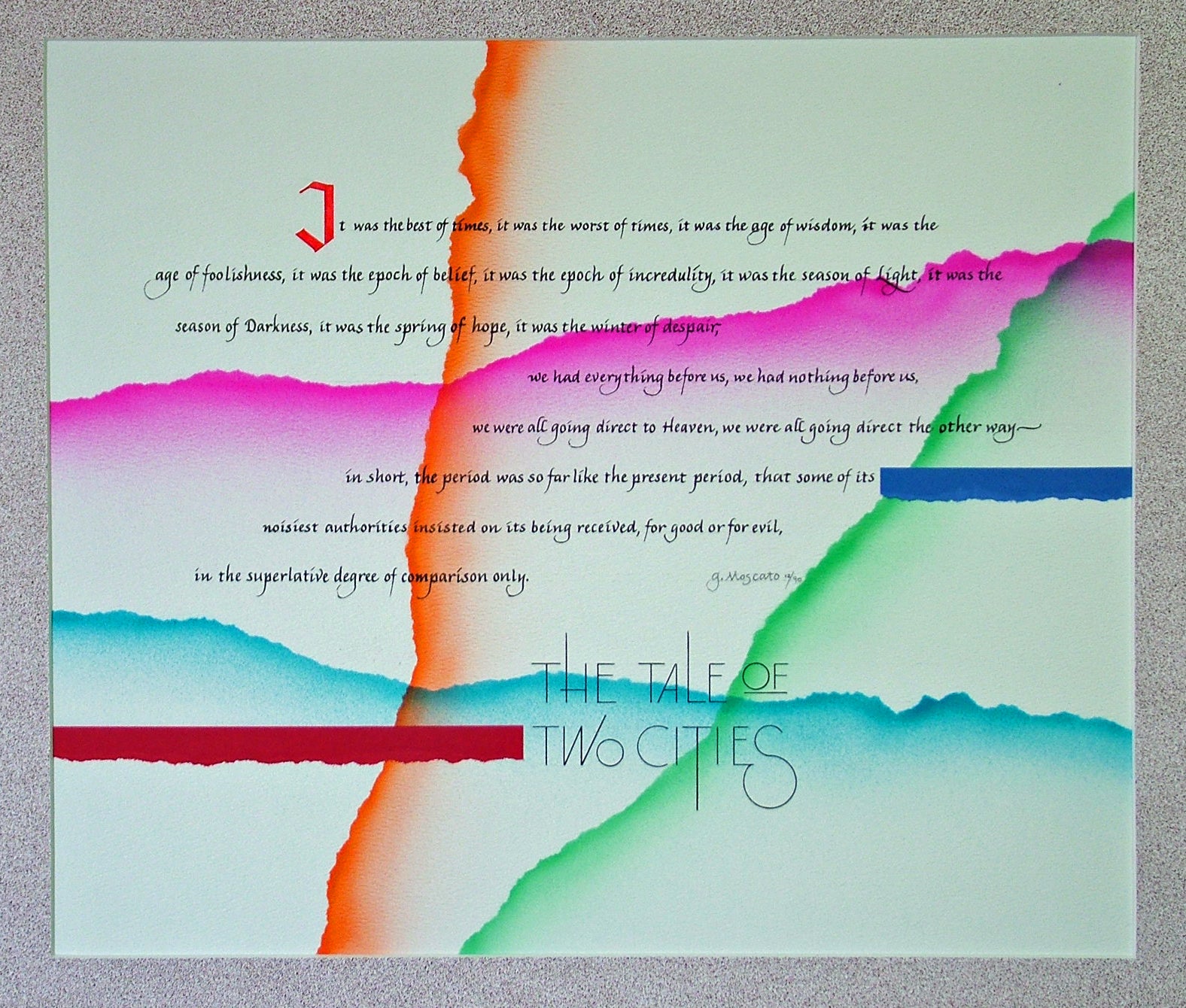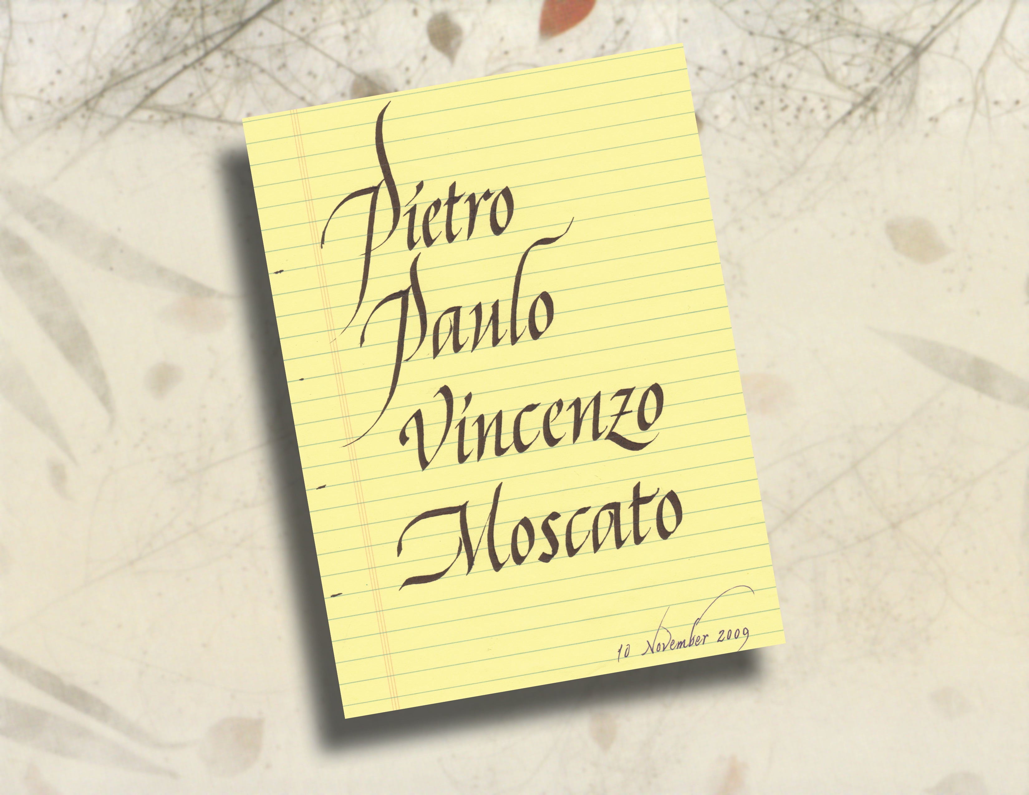 Jerry began his lettering career while seated on his Grandfather’s knee, making gestural ‘springs’ to warm up. Some 2 decades later as a designer at Zipatone, he began a self-taught, Calligraphy discipline using the Speedball C-series steel nibs. After many years of calligraphy practice, he penned his grandfather’s Italian birth name as an homage to his early inspiration. Also, many of his calligraphic specimens were influenced by his late wife, Christine. She was a well-read wordsmith, authoring numerous narratives in poetry and prose. Her most notable, “My Pen is My Paintbrush” was the calligraphic grist on several calligraphic specimens.