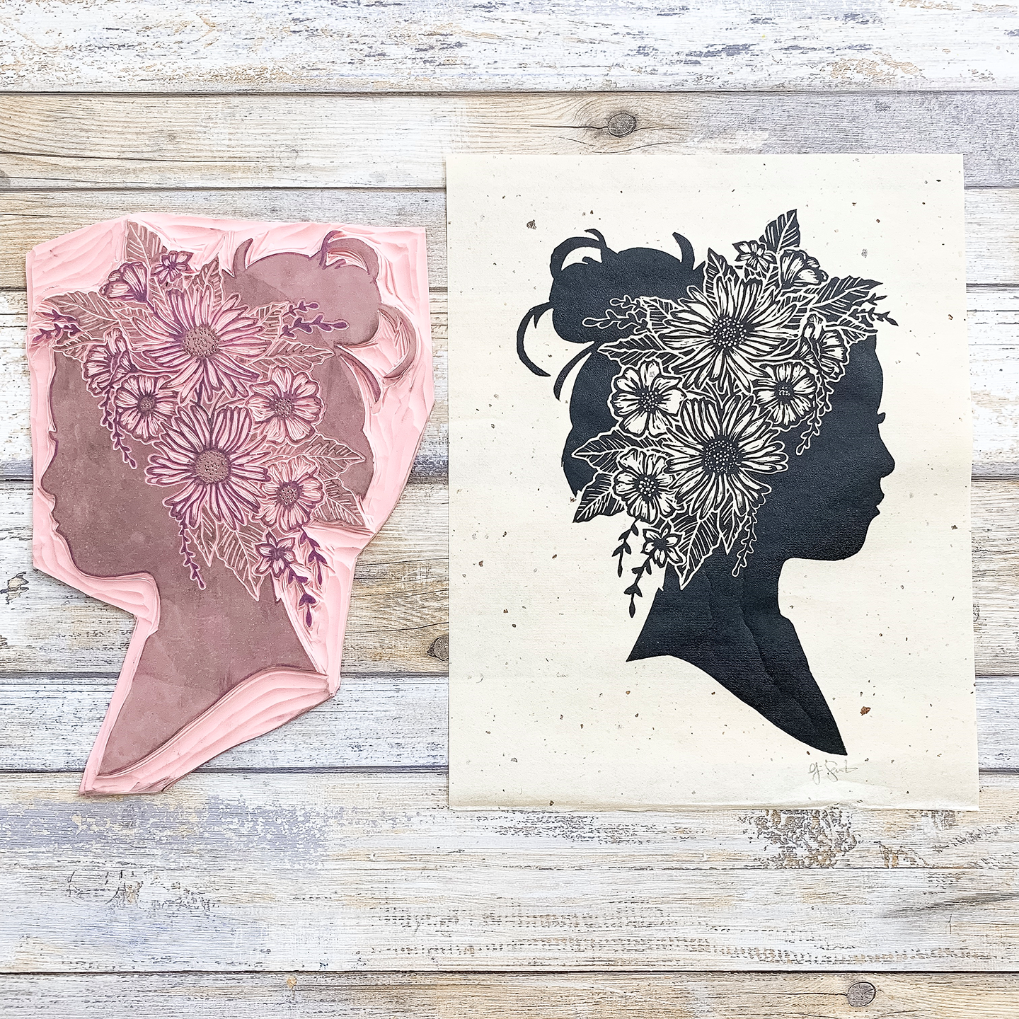 Today Gina enjoys exploring and expanding what she can do with linocut block printing, from textiles to embossing and everything in between. She enjoys sharing the love of print with others, developing carving and printmaking sets to make printmaking more accessible. Gina also hosts a semi-annual printmaking challenge, #blockpartywithgina, to build community and support printmakers and other creatives. Gina believes in the power of the creative process, and believes everyone should have an opportunity to create art, especially the meditative and therapeutic properties of carving and printing.