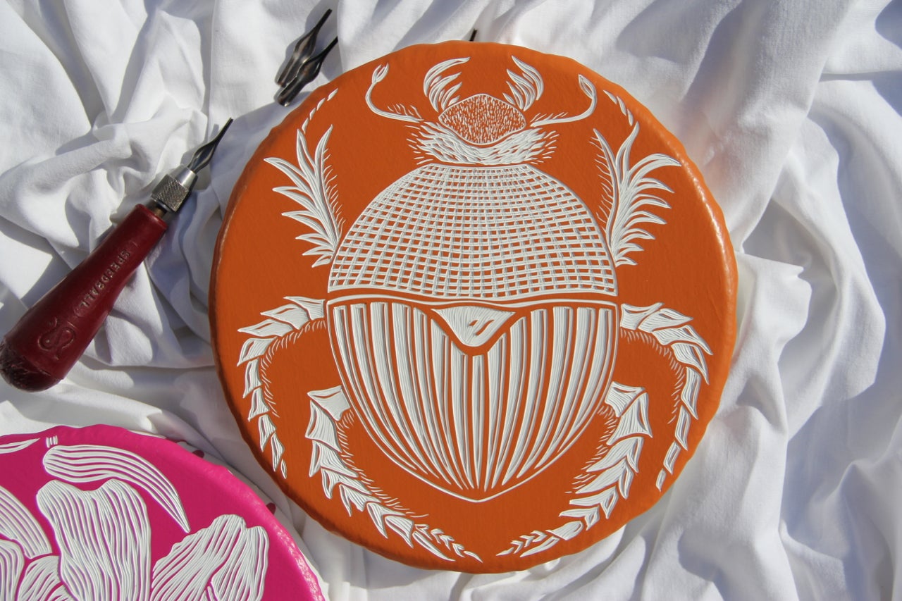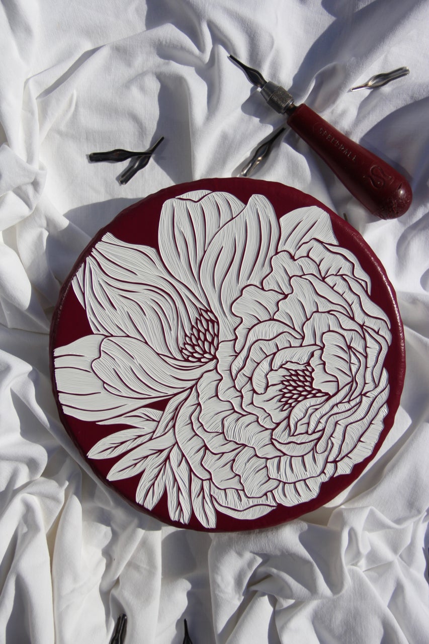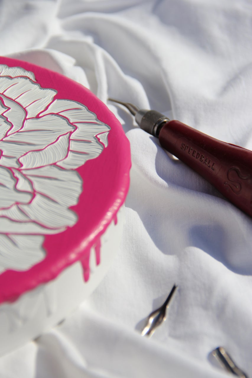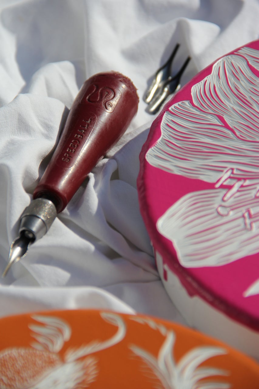 I only ever use one tool and that is the Speedball No.1 cutter; in fact over the last 15 years I have used hundreds of heads to carve hundreds of paint carvings and I'm not stopping anytime soon. The sharp v-shape edge allows me to cut intricate textures and detail and bring small and large scale works to life. I know I can create what is in my heart using the Speedball carver and that makes me very happy.