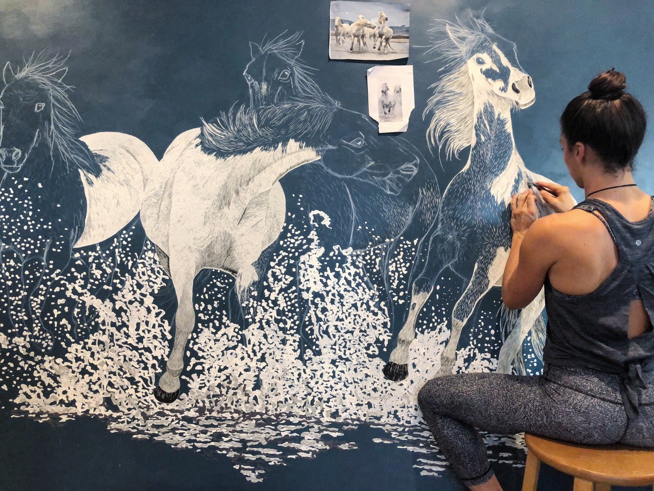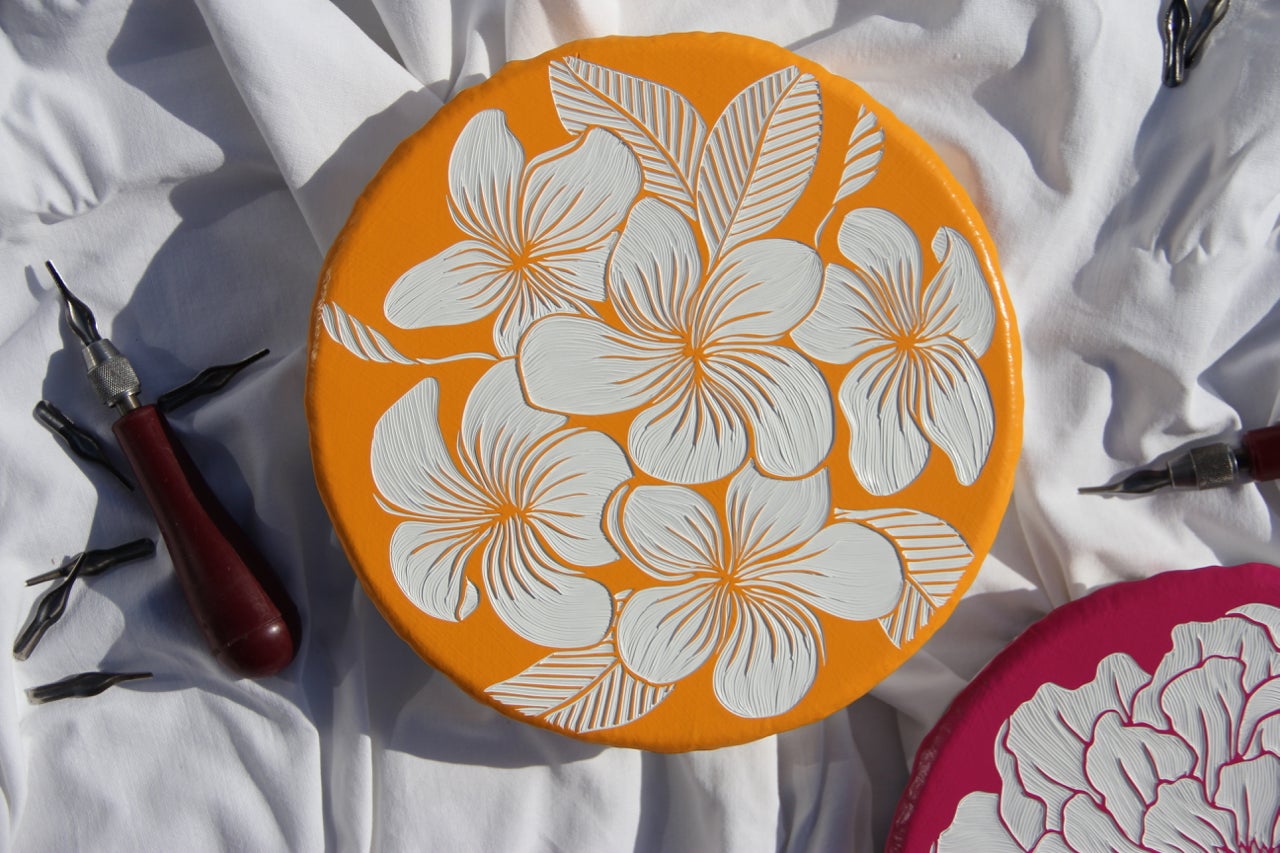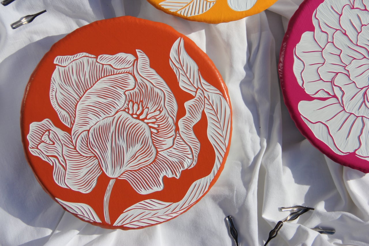 I’m Hannah Jensen, a full-time paint carver. I layer up boards with up to 70 layers of acrylic paint and then carve back through the layers to reveal the different colours below. It has a topographical effect and I enjoy emphasising texture, using nature as my main source of inspiration. When I am not in the studio, you’ll find me on the water or up a mountain. We have nature at our fingertips here in New Zealand and I make sure I make the most of it. I am also lucky to have traveled to South Africa where I spent many hours walking around my fathers game reserve before he passed away and a further 37 countries to fuel me with inspiration. But the time in South Africa with the animals was life-changing, the country and the people hold a huge place in my heart. From that stemmed my passion to carve large scale wild animals. I have been carving since I created this technique in 2003 when I was at University. I was majoring in Printmaking and experimenting with carving into wood after mainly working with etching and engraving into metals and plastics to print from. I honestly came across the technique by mistake, I did too many layers of paint on a board and had a light bulb moment when I was then able to carve into the paint before carving deeper into the wood. I now only do one-off works and the ‘layered woodblocks’ have themselves become the artworks. It is a bit like painting in reverse, all the paint is applied first and I simply reveal the artwork below. I absolutely love carving.