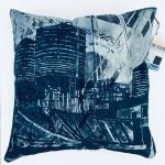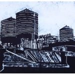 Holly E. Brown, founder and owner of Clockworks Press™ is a Brooklyn-based artist specializing in collagraph printmaking. Inherently, drawn to architecture and strong black and white photography she uses her iPhone as a portable sketchbook. These images are then drawn on the surface of a recycled fiberboard and hand carved over many hours. Through a reductive process of tearing layers she creates a range of values. With eco-friendly practices already in place in her studio, it was during Holly’s solo show at Ray Brandstore (2016) in Delft, Netherlands that the idea of printing on re-purposed denim came to fruition. Taken with the idea of creating a portable print she developed her first product, “The Denim Clutch” which launched at New York Denim Days, September 2018. Printed in a limited edition on recycled jeans and fully manufactured in NYC each bag is unique and sustainable. Holly has been working closely with Officina 39+, a sustainable dyestuff company in Italy to use a pigment made from textile production waste in combination with Speedball fabric inks.