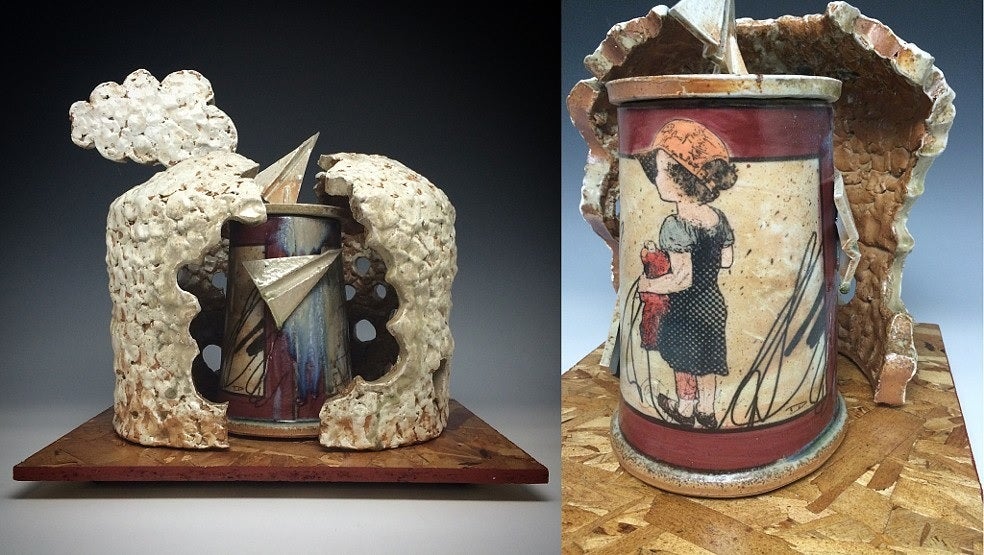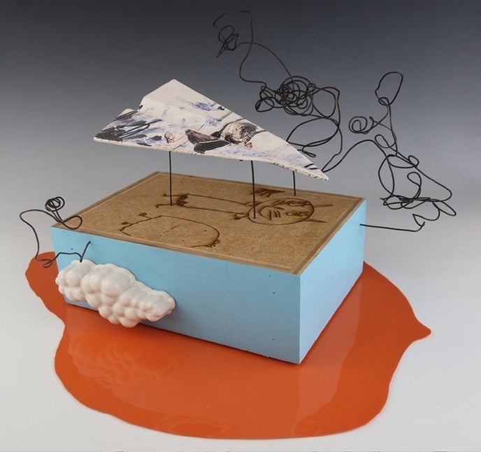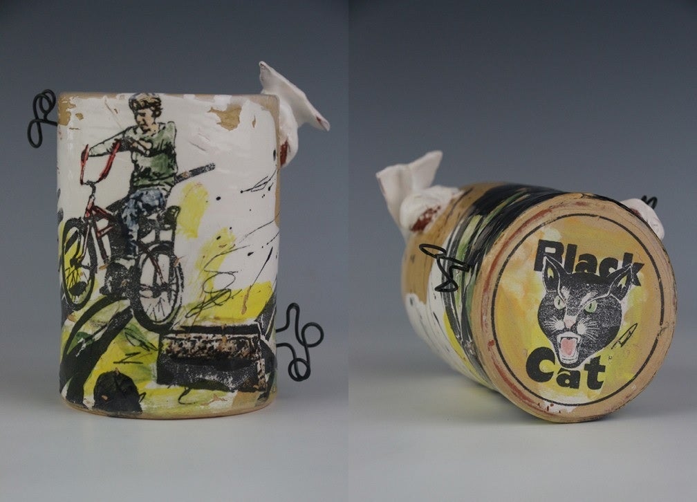 My work is an investigation of the symbols, people, and objects that affect perceptions, the subconscious, and life experience. I approach art making as research into thought, memory, and play. It is a study of metaphor through fantasy and authenticity. This research is driven by the physicality of materials and the intersection of two and three-dimensions. My interests are in photography, digital imaging, drawing, and narrative while paying homage to traditional and non-traditional ceramic processes and archetypes. I enjoy the “search” and am invested in the cognitive spaces of art making. I seek to push the boundaries between object and image. I am concerned with dreams, dreaming, wanderlust, relationships, and particulars. Though ceramics is a passion and plays a significant role in the art that I produce, my practice reaches into the realms of music, skateboard art, and digital fabrication while the objects that I make often incorporate non-ceramic materials and processes. I have an interest in the use of new and emerging technologies and am excited about intermingling them with traditional methodologies. My quest is to be active in the search and charged with the ambition to continue to progress. “Progression” is a term often used by those who participate in action sports such as skateboarding. In use it refers to such matters as learning new moves, breaking mental barriers, and practicing to hone one’s skills. I see parallels with artistic progression. One must be active in taking risks, asking questions, and learning the material to visualize ideas with confidence and competency. There are endless problems to solve with ceramics. It requires technical proficiency to truly master it. I simply want to continue to progress as a maker. To try new things and maintain a license to engage in other materials, media, or processes as it fits the project. My work is largely project/series based and is varied in output. For me, the work is an investigation of ideas and the physical elements that make up the aesthetic and conceptual quality of the work. Ceramics is not always the right choice because of its physical limitations, but sometimes it’s a good choice because of them.