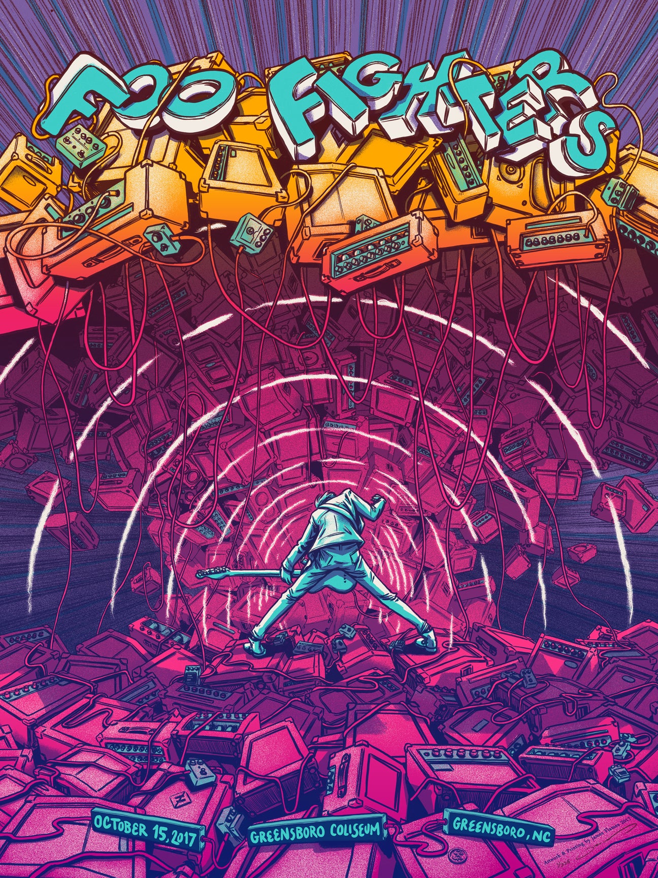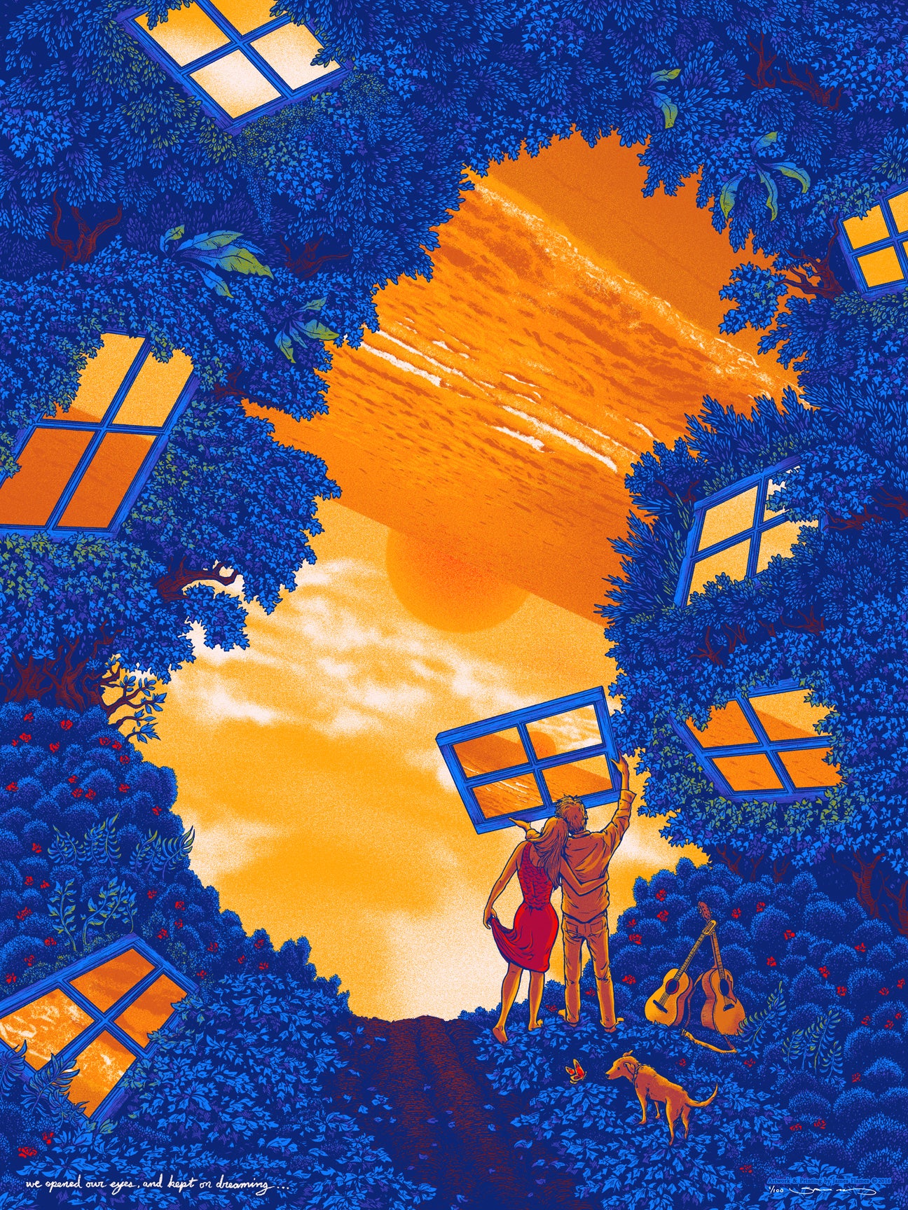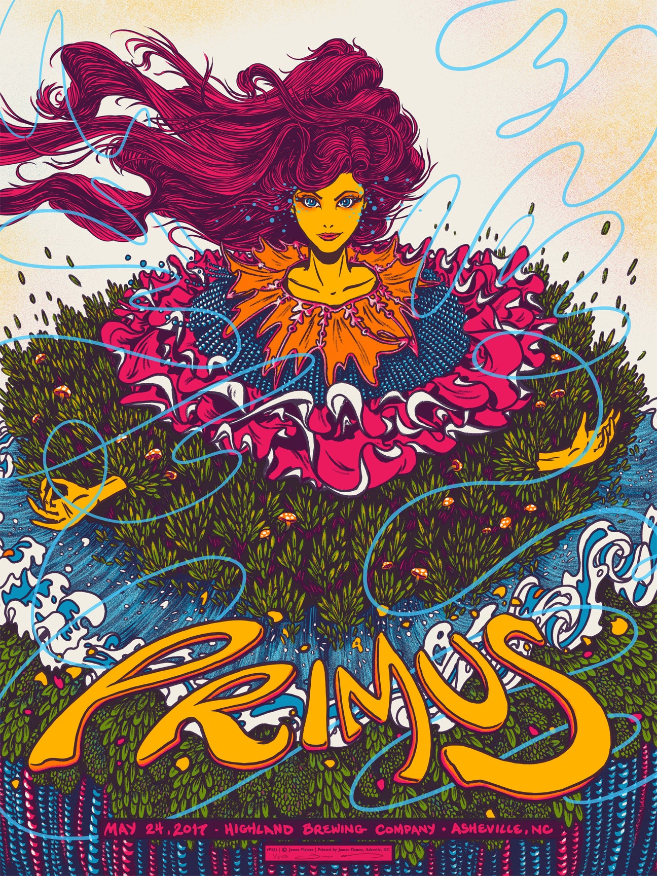 James honed his skills in his hometown of Brooklyn, NY before moving to the beautiful Blue Ridge Mountains of Asheville, NC, where he currently works and resides. He creates rock posters for some of today’s biggest touring bands and musicians, including Billy Joel, Foo Fighters, Dave Matthews Band, Phish, and Widespread Panic. And his artwork has been featured in galleries all over the world, as well as on officially licensed movie posters, album covers, beer bottle labels, magazines, comic books and, well, you get the idea. He creates everything by hand in his studio tucked away in the woods.