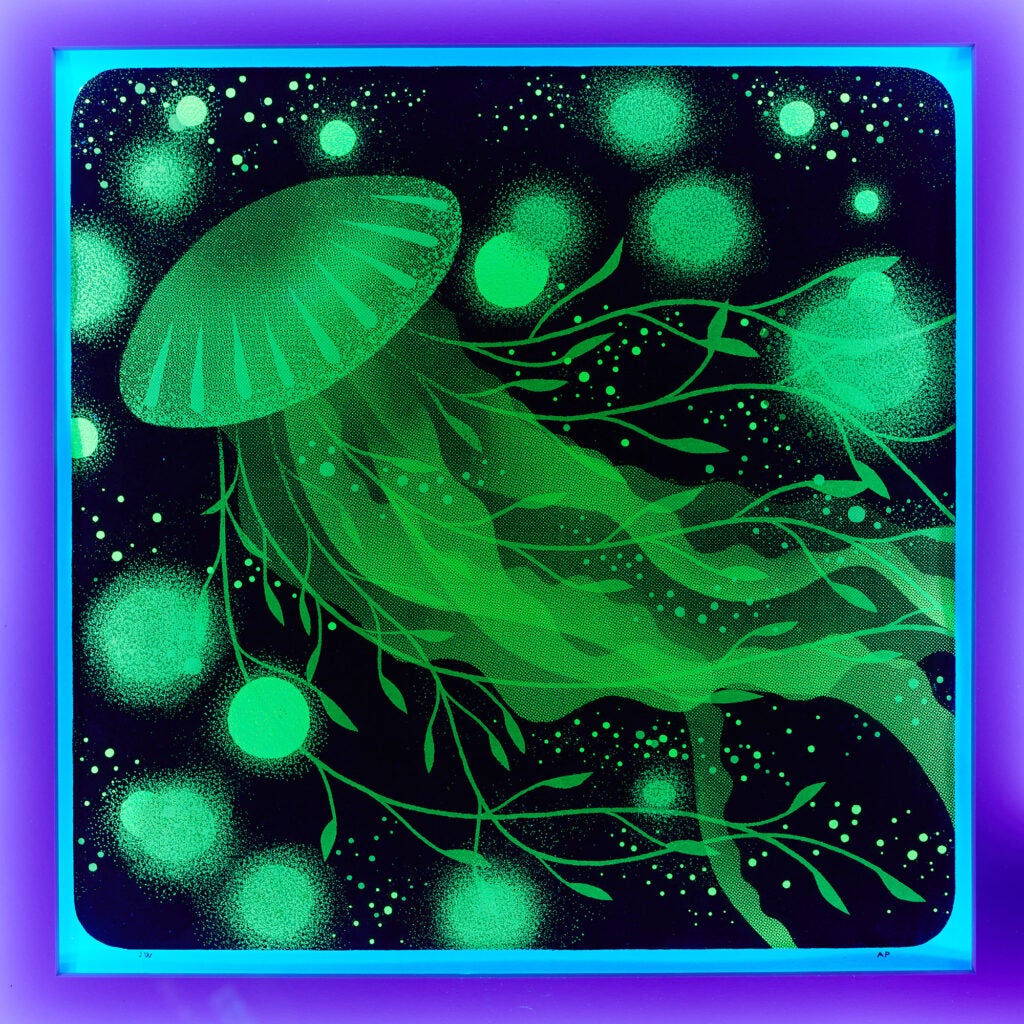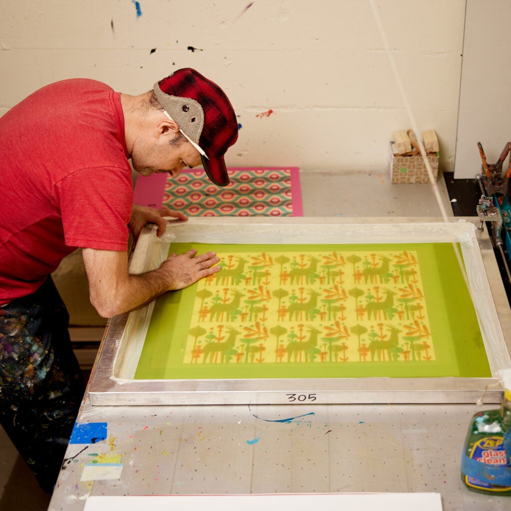 Illustration and design are the foundation of the work that I create using silkscreen. I was first inspired to learn to create limited edition band posters. This later branched out into creating art prints and other printed ephemera. I love exploring random overprints, graphic shapes and halftones. The spot color printing creates rich saturated colors that are really unique to the process of silkscreen. My illustration is very much informed by the printmaking process.