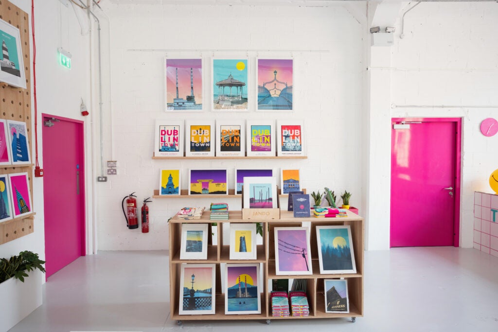 Hello! We’re husband-and-wife duo Julie and Owen, the founders of JANDO, a multi-award-winning printmaking studio based in Dublin, Ireland. We’re known for our vibrant, bold prints that celebrate Ireland’s favourite places and iconic architecture, all captured in our own colourful, playful style. Shipping to over 43 countries, our work has connected with customers around the world who share our love of great design, brilliant colour, and a good story.