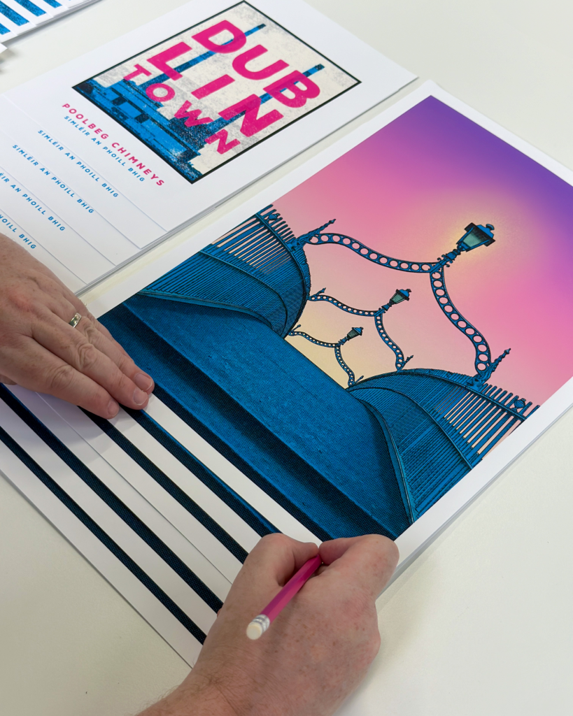 At JANDO, we combine traditional techniques like screen printing, riso printing, and hand-drawn illustration with a fresh, modern approach to create something truly unique. Every print is made by us, right here in our studio. Along the way, we’ve had the pleasure of collaborating with amazing clients like Notre Dame, Trinity College, Jameson Irish Whiskey, Bank of Ireland, PayPal, and the Irish Aviation Authority on a range of creative and charity-led projects.