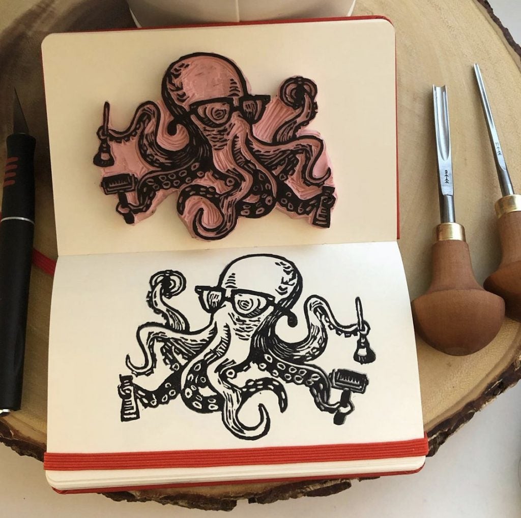I love carving stamps and lino blocks. It’s been a new found form of creating art that has given me absolute joy. My day to day job is mostly digital work in front of a computer, so doing something with my hands that requires my full attention and carefully carving details has been a big part of keeping my life balanced. I opened up my online shop Jer Wat Prints when my wife who is a screenprinter encouraged me to make my prints available for people to add into their homes. I have loved the encouragement I get from people who are excited about bringing my work into their space. The process of making prints and the joy that is brought to those who enjoy them is why I am a printmaker.