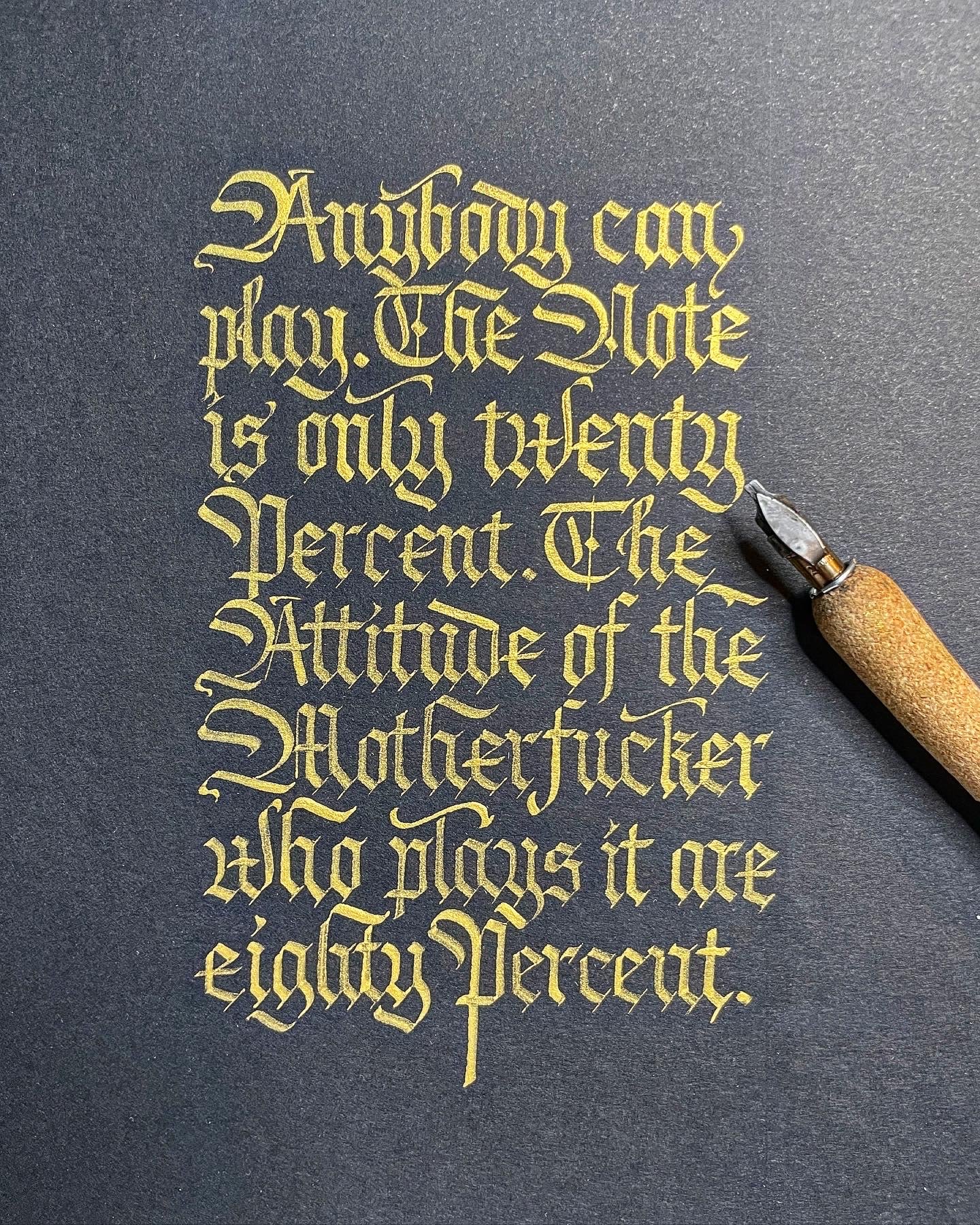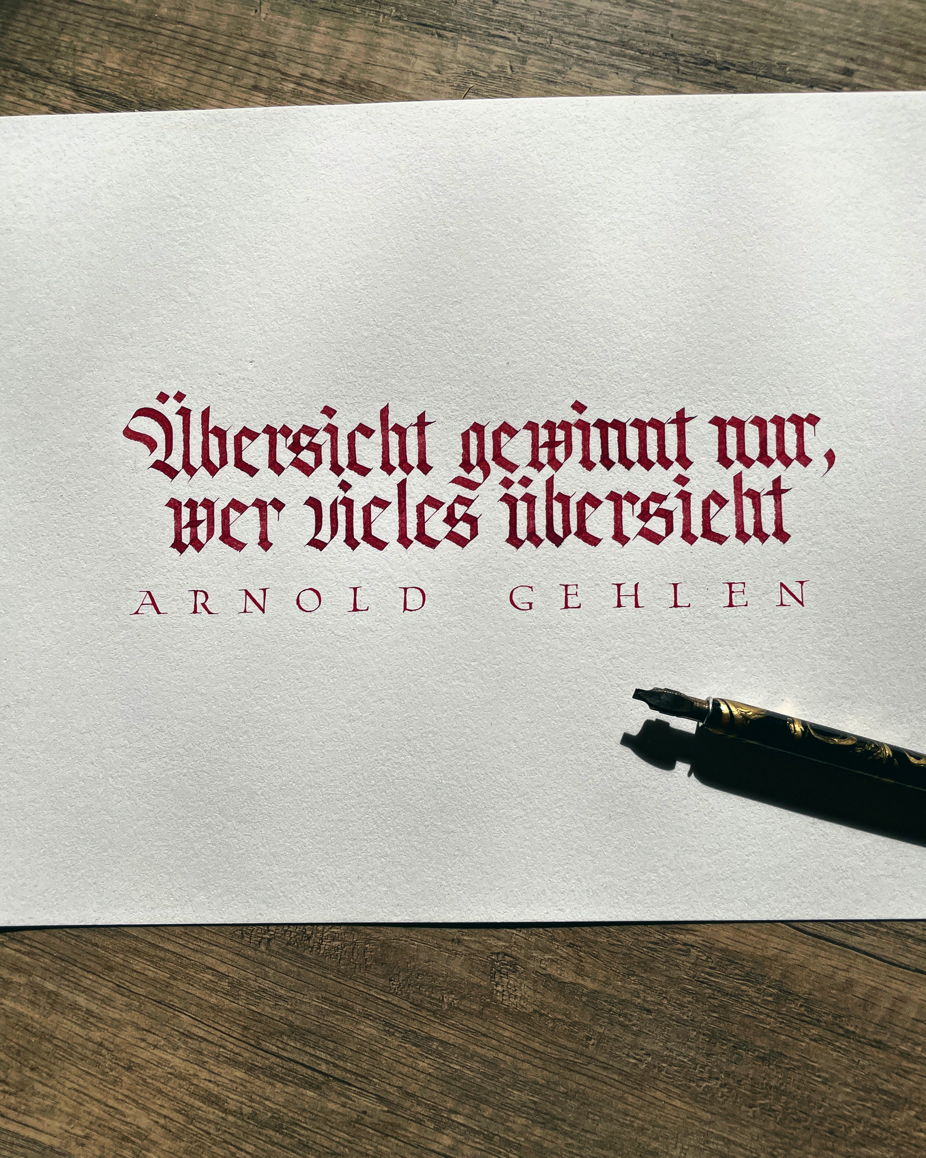I’m Johannes, a Berlin-based calligrapher, and urban artist. My first real contact with calligraphy was back in 2015 when I watched a video of a CD cover being designed by Frank Ortmann – and it has never left me since. I began writing frenetically and soon it turned out that I had a profound love for blackletter. Since I’m lefthanded, this form of writing is kind of accommodating as I can just reverse the strokes right-handers do. Other forms of writing are not that easy to adopt.